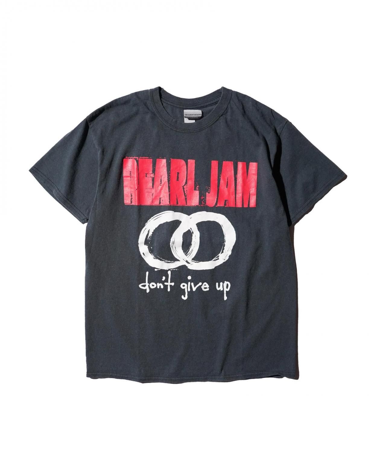 アメリカ合衆国のロックバンドであるPEARL JAM/パール・ジャム。グラミー賞受賞、アルバム4枚がビルボード誌に初登場1位、CDセールス最速記録がギネスに認定されるなど、社会的・商業的成功を収めたロックバンド。フロントにバンド名と「don't give up」の文字がプリント。シンプルかつインパクト抜群の一着。