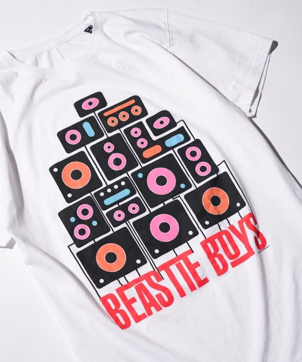 こちらは1978年に結成されたニューヨーク発のアメリカのHIP HOPグループ「BEASTIE BOYS」の95年に行われた「Quadraphonic Stereo Tour」の際のツアーTシャツ柄、マイクミルズのデザインセンスが光る一着。