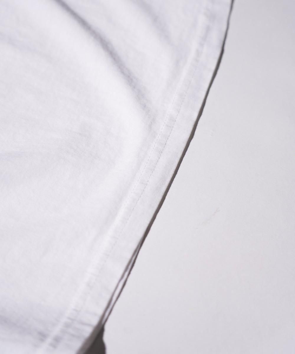 日本に数台しかない衣類洗い用のオゾン発生装置でオゾンを発生させ、それを機械に投入し、脱水後の製品の水とオゾンが反応して酸化し脱色させます。 生地を傷めない加工なので新品でUSED感を楽しめます。洗いの工程で通常の洗いより15%水の量が少なく済む利点もあり環境も考慮している加工です。