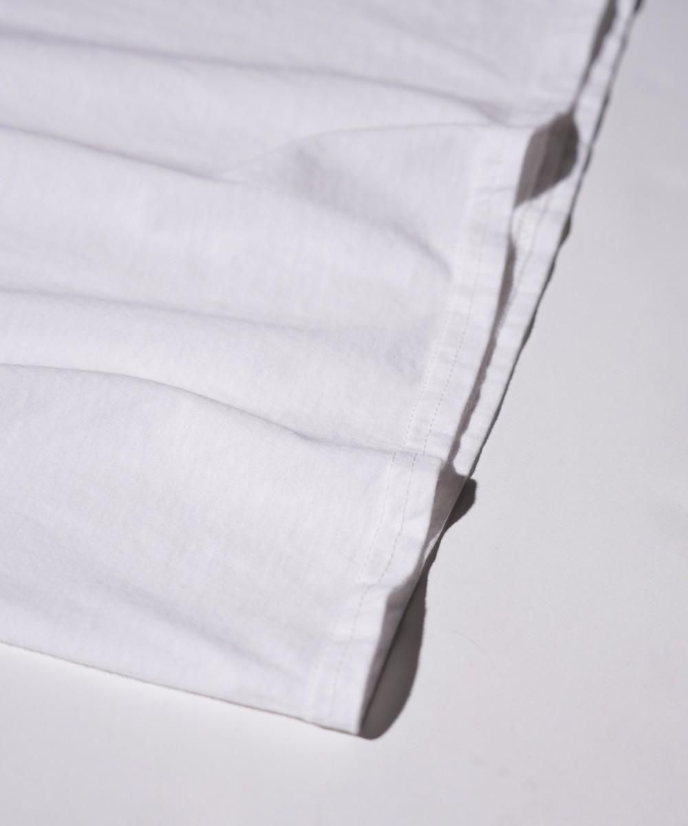 日本に数台しかない衣類洗い用のオゾン発生装置でオゾンを発生させ、それを機械に投入し、脱水後の製品の水とオゾンが反応して酸化し脱色させます。 生地を傷めない加工なので新品でUSED感を楽しめます。洗いの工程で通常の洗いより15%水の量が少なく済む利点もあり環境も考慮している加工です。