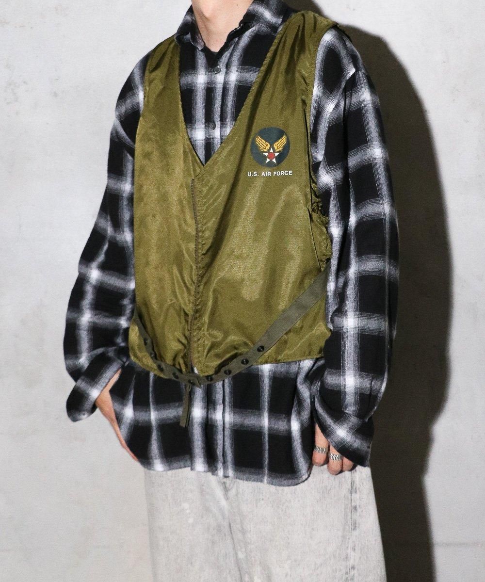 オリジナルは1940年代後半に開発され、フライトカバーオールの上に着用されるアイテムで、航空機搭乗員の救命用無線機を装備する為のベスト。