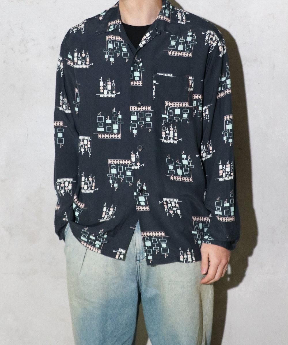 現代的なサイズ感ながら、ヴィンテージの特徴をしっかりと捉えた完成度の高いレーヨンオープンカラーシャツ。