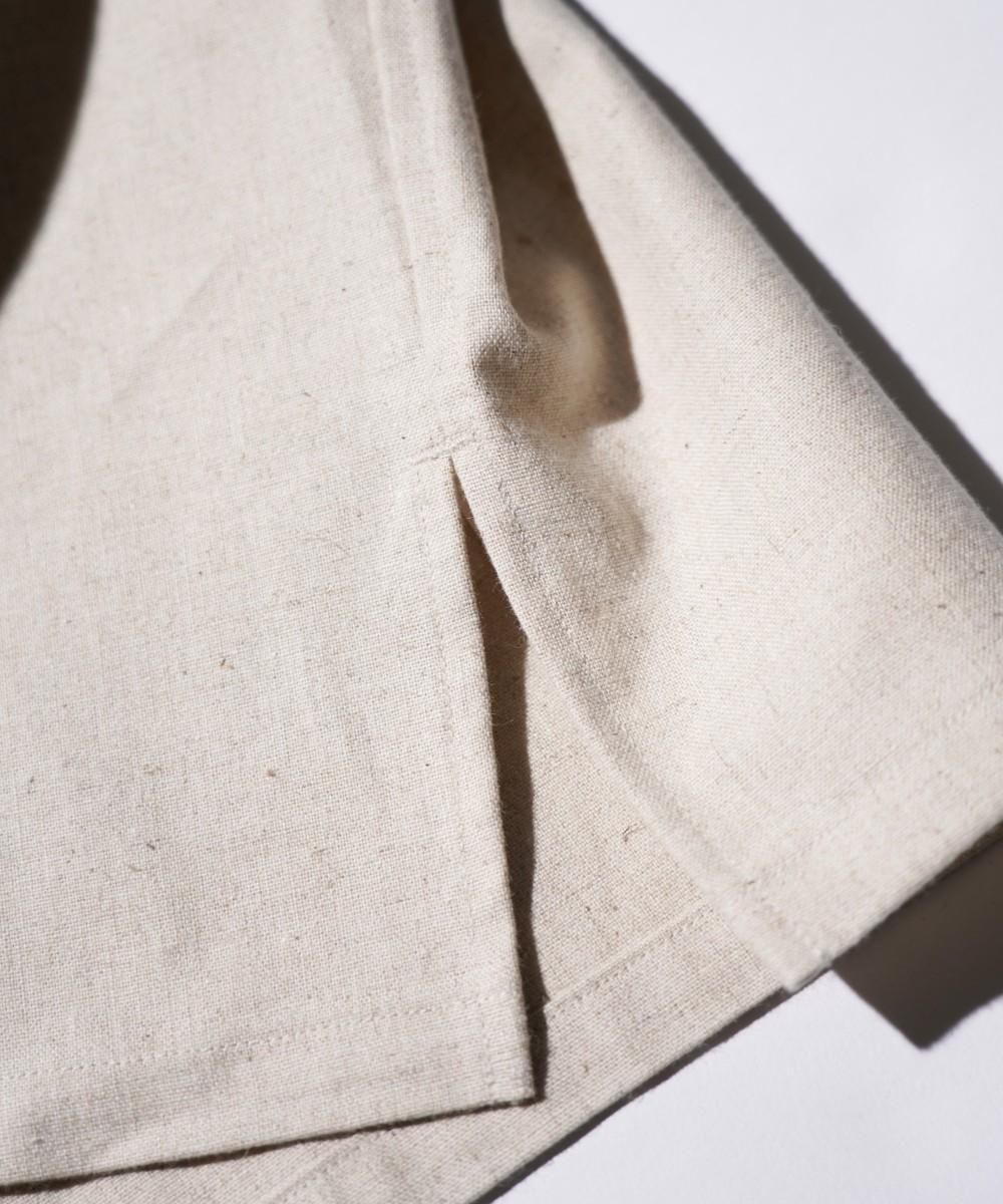 ・台襟の無いすっきりとした襟周り。