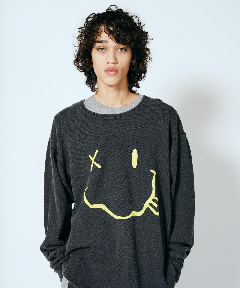 フロントにはスマイルフェイス、猫のグラフィックをプリント。