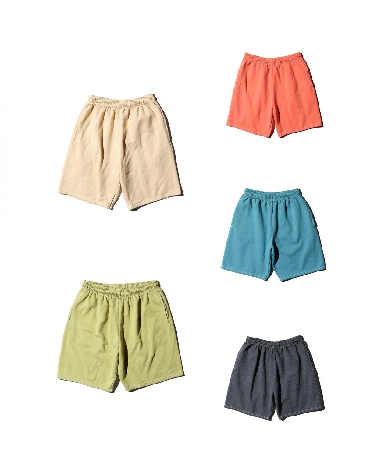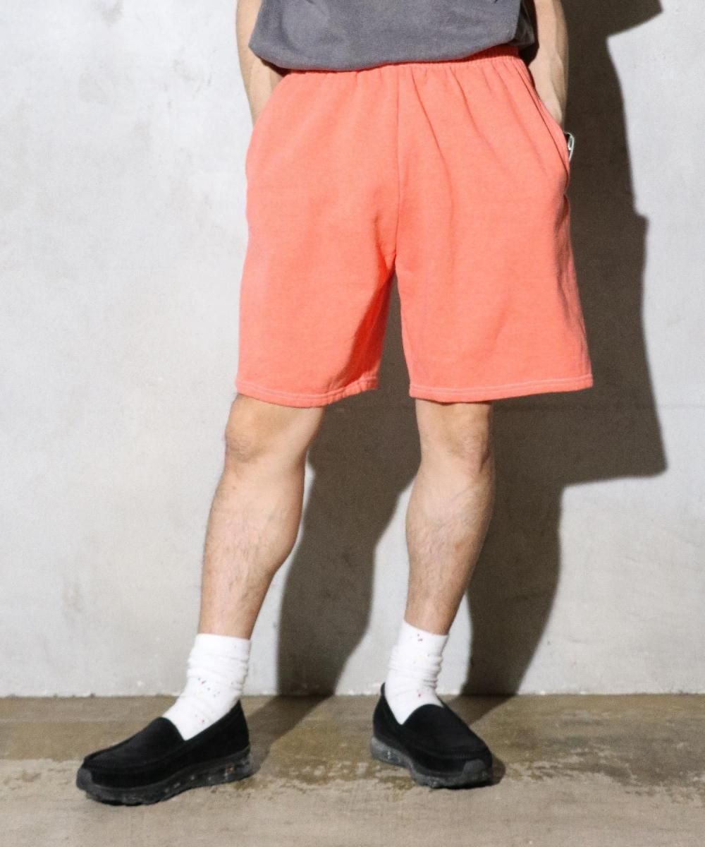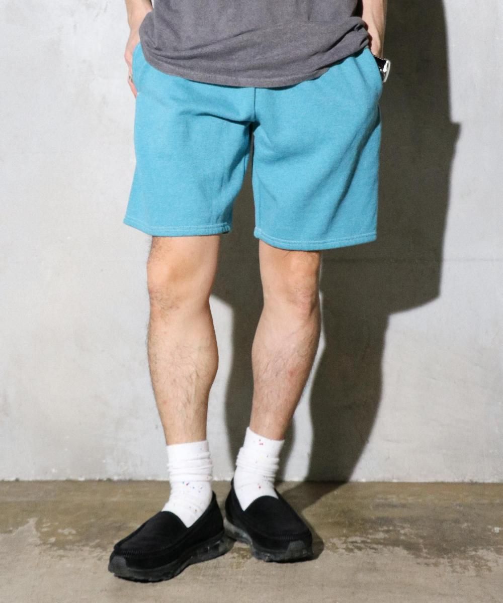 ガーメントダイ(染料製品染め)を施したスウェットショートパンツ。