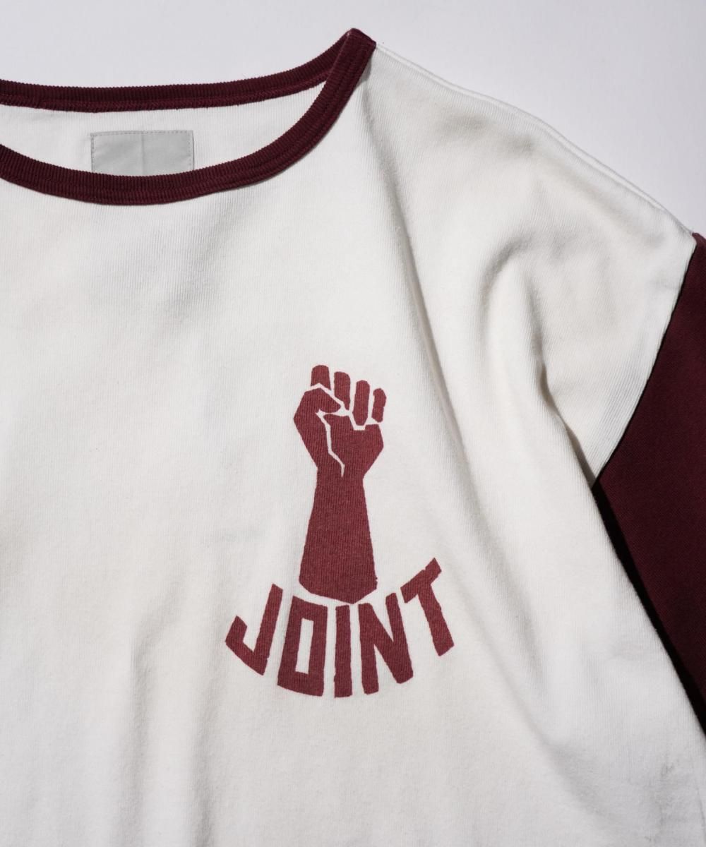 仲間たちの手によって擦られたプリントには強い意志が宿り、使い古されたボディーからは本気の想いが感じられます。そんな雰囲気を、リアルかつ真摯に表現したカットソーです。