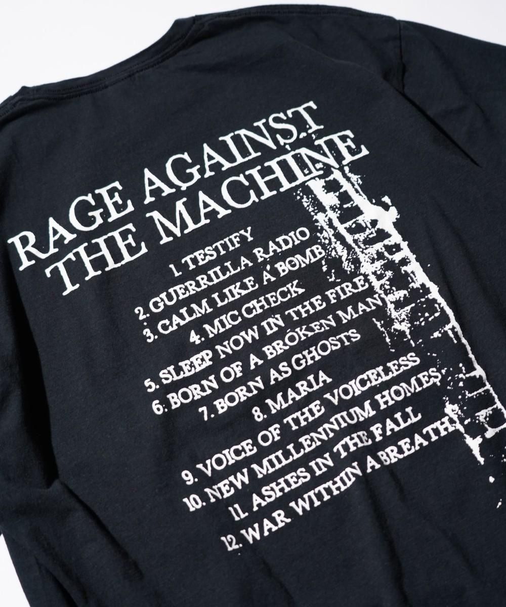 RAGE AGAINST THE MACHINEを代表するアルバム "THE BATTLE OF LOS ANGELES" フロントには一度は見たことのあるアルバムアートワーク、バックにはセットリストがプリントされた一着。