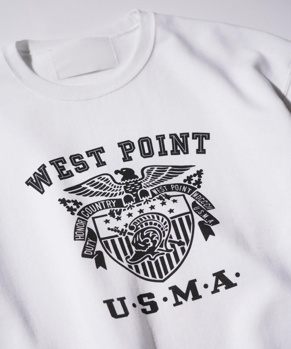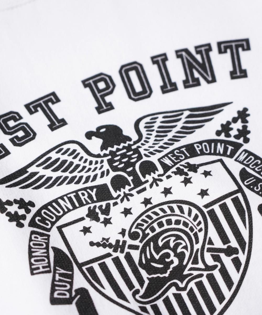 USMA(アメリカ合衆国陸軍士官学校)モチーフロゴをフリントにプリントした8oz半袖スウェット。