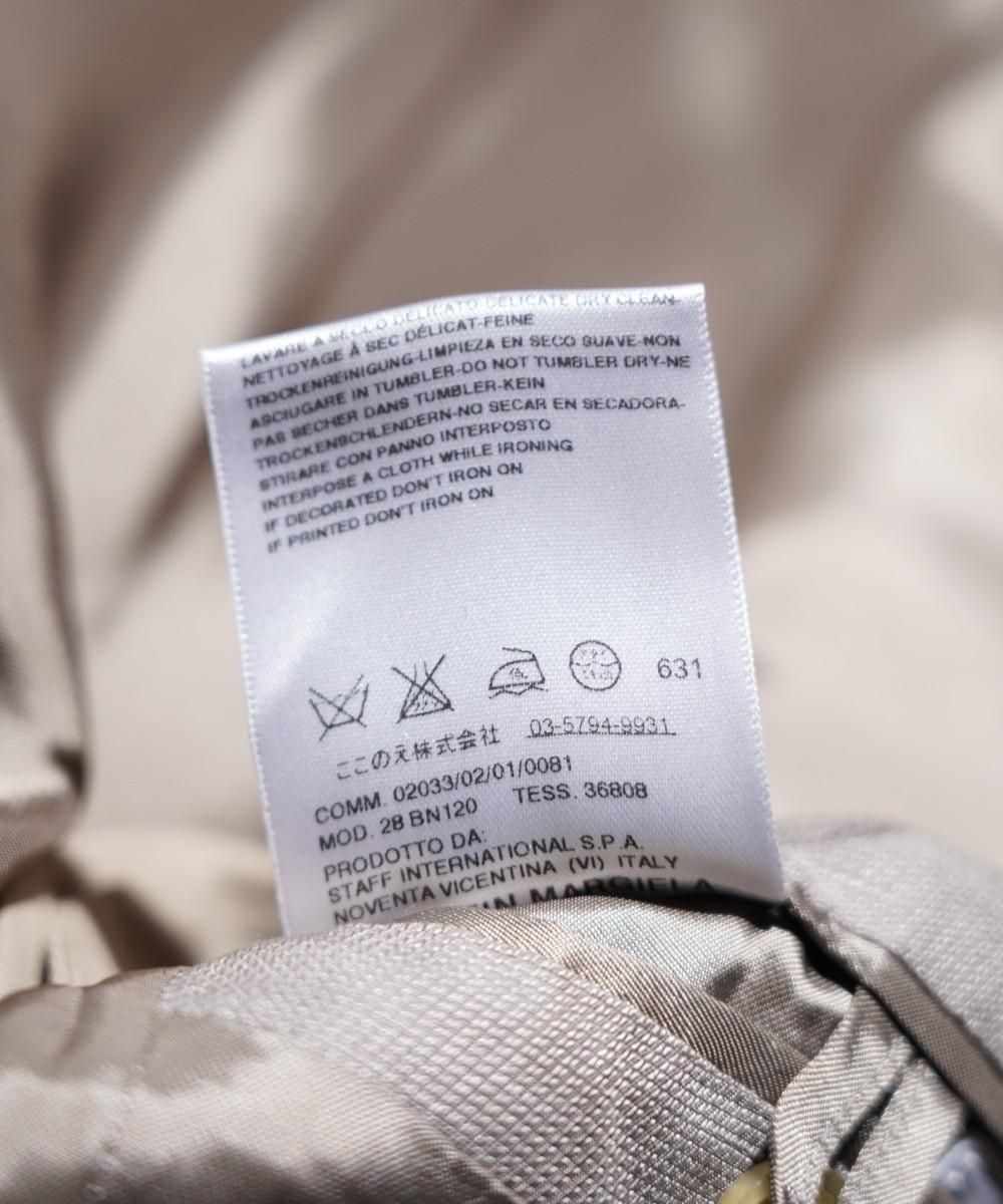 2008年春夏コレクションのシングルブレストスモーキングジャケット。本作は、1960年代のイタリアで製作されていたスモーキングジャケットをベースに再構築された一着です。リネン55%、シルク45%の混紡素材による上質な光沢と、滑らかでエレガントなショールカラーが特徴。裏地にはレーヨン100%を採用し、快適な着心地を実現。軽やかな素材感と洗練されたディテールが融合し、フォーマルとリラックスの境界を曖昧にする、マルジェラらしい再解釈が光る逸品です。