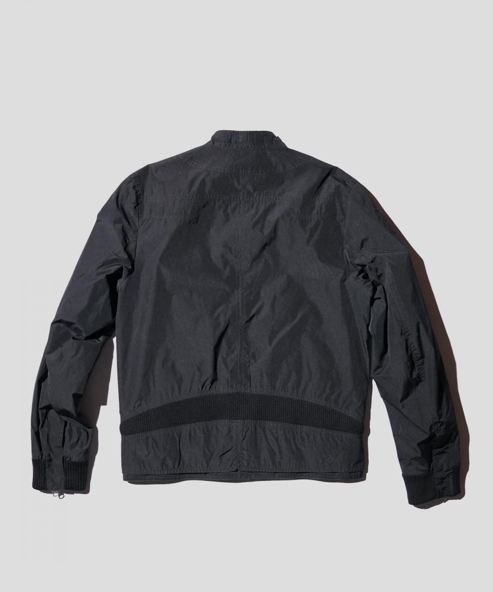 DIOR 2008年秋冬コレクションより、クリス・ヴァン・アッシュが手がけたブラックジップジャケット。マットな質感と仄かなメタリック感を併せ持つ素材を使用し、モードとミリタリーの融合を感じさせる一着です。ナポレオンジャケットを彷彿とさせるクラシカルなディテールを現代的に再構築し、襟元にはチンストラップを配してデザイン性と機能性を両立。フロントと袖のジップは高品質なLAMPO社製で、細部へのこだわりが際立ちます。袖先と裏裾付近にはリブを備え、快適なフィット感とシルエットのメリハリを演出。背面にはディオールオムの象徴であるダーツが入り、立体的かつ洗練されたラインを形成しています。クリス・ヴァン・アッシュらしいシャープな美学が息づく、エッジの効いたジャケットです。
