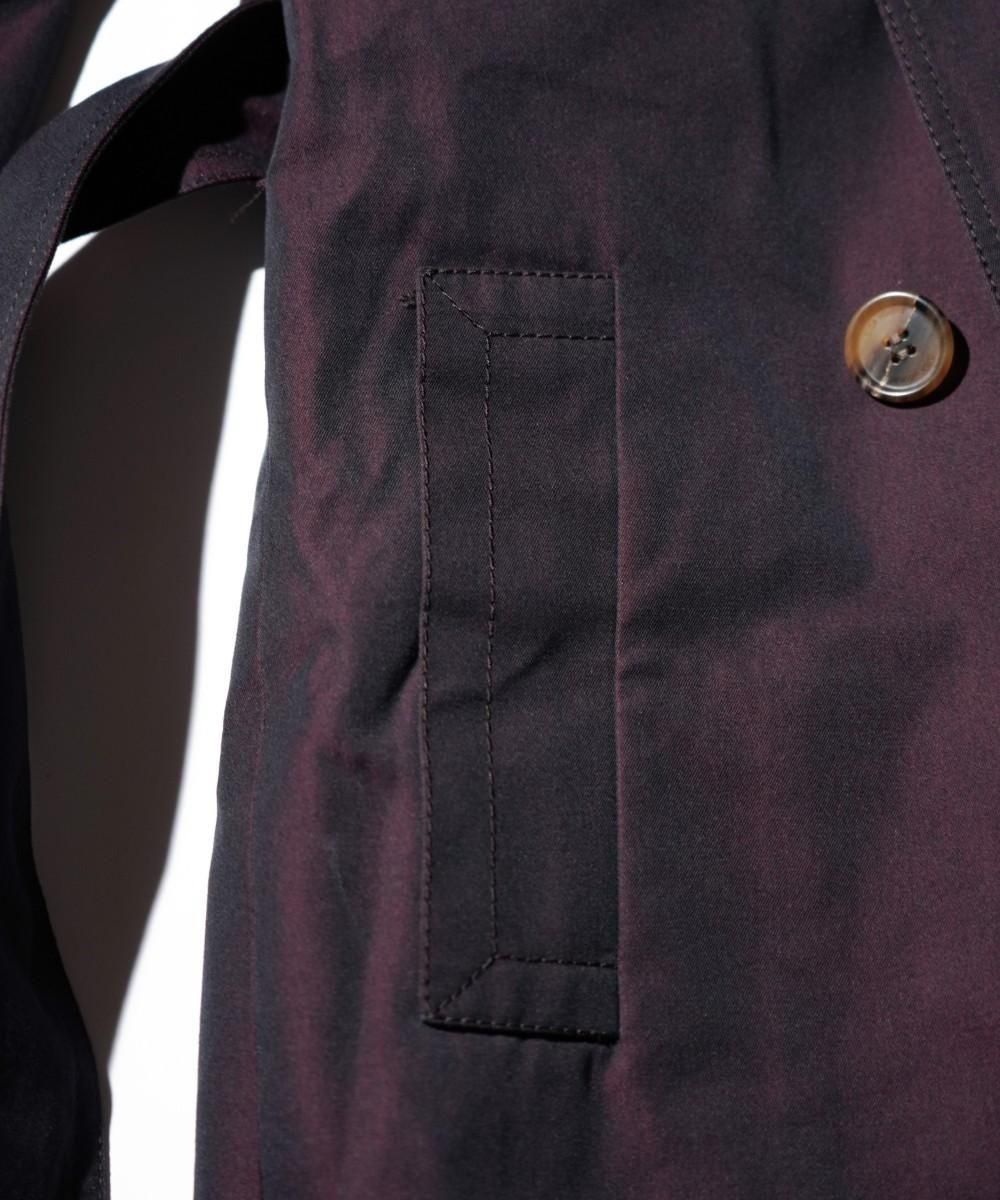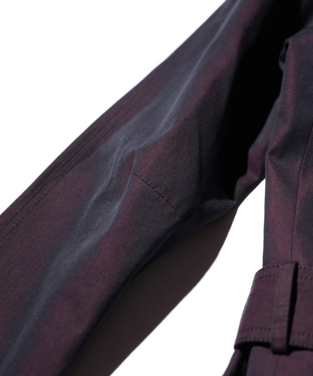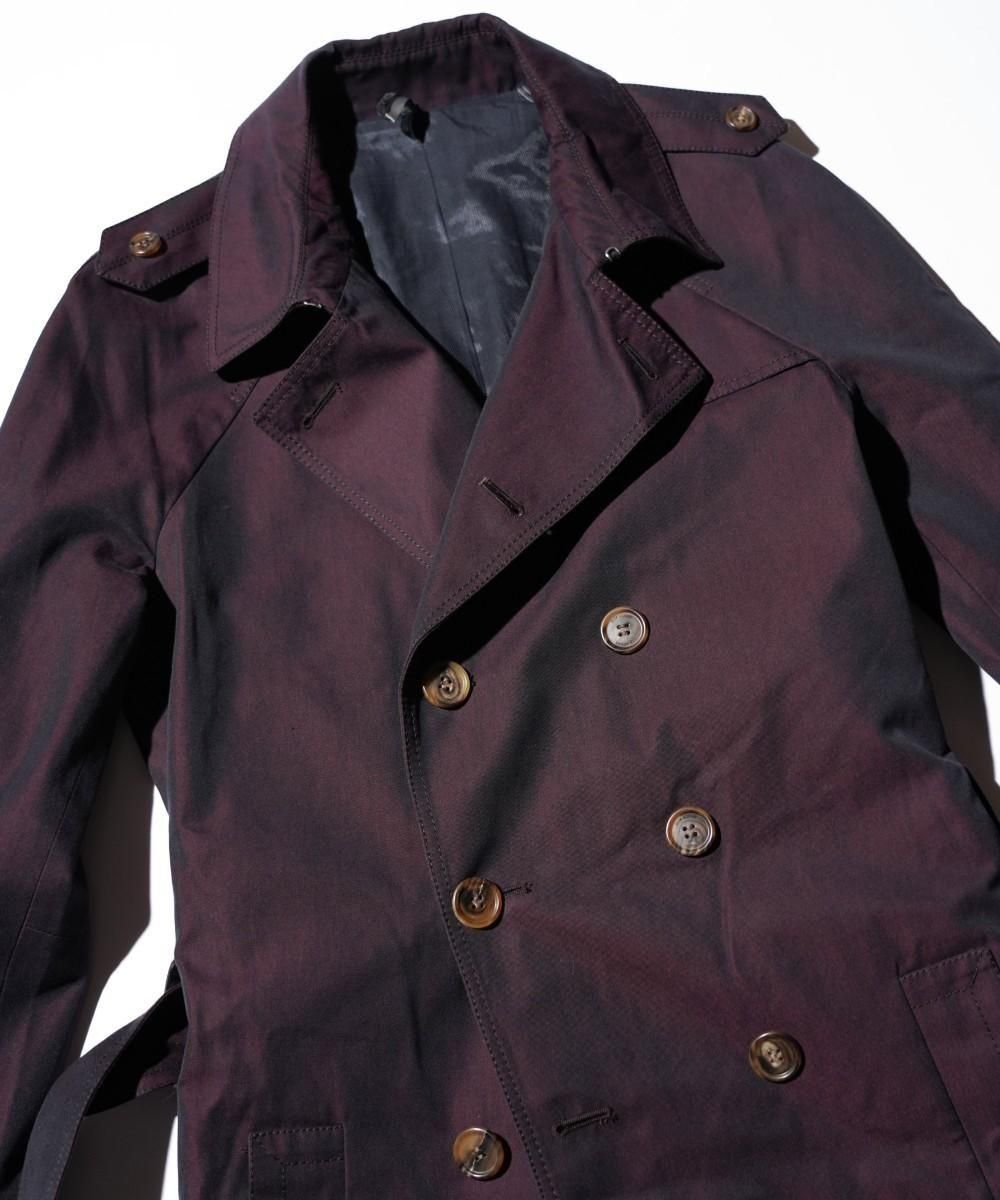 DIOR 2008年秋冬コレクションより、クリス・ヴァン・アッシュが手がけたバーガンディのトレンチコート。深みのある玉虫色のバーガンディが上品で洗練された存在感を放つ一着です。クラシカルなトレンチコートの構造を踏襲しながらも、エポレットや袖の深いボタンホール、直線的なカッティングなど、モードなエッセンスが随所に盛り込まれています。ボタンには「DIOR HOMME」の刻印が施され、細部までブランドのこだわりが感じられます。同色のウエストベルトがシルエットの調整と引き締めを可能にし、ひじ部分にはダーツを入れることで自然な立体感を演出。背面にはディオールオムの象徴ともいえるダーツと、首元から裾まで続くプリーツが施され、構築的かつドラマティックなバックスタイルを形成します。タイムレスな中に鋭い感性が光る名品です。