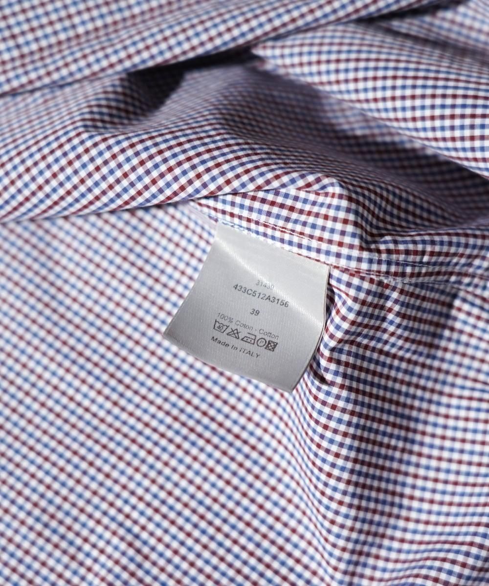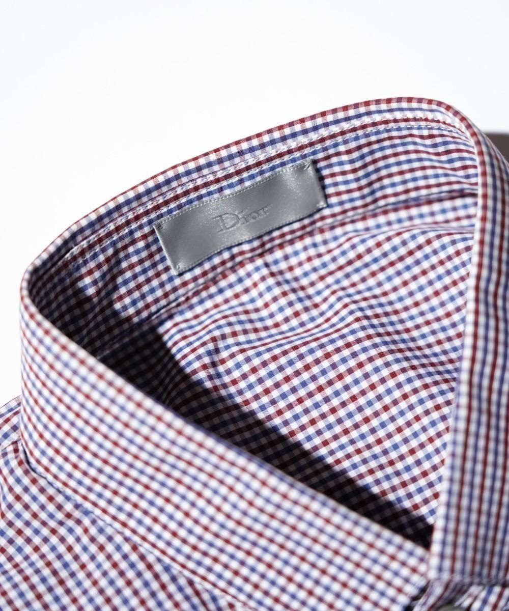 DIORのバンドカラーシャツ。トリコロールカラーで構成されたマイクロチェック柄が印象的な一枚。襟はすっきりとした印象のバンドカラー、前立てはボタンが隠れる比翼仕様で、ミニマルかつ上品な仕上がり。繊細なチェックパターンが洗練された雰囲気を演出し、シンプルながら存在感のあるデザイン。滑らかな肌触りのコットン100%素材を使用し、着心地も快適。カジュアルからきれいめスタイルまで幅広く活躍する一着。