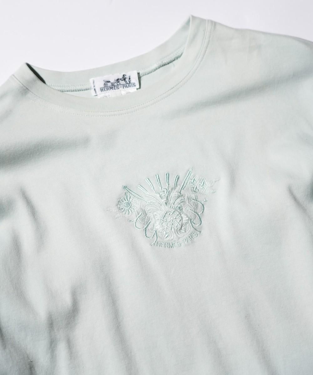 80年代頃の希少なヴィンテージアイテム。爽やかなミントカラーが目を引くロングスリーブTシャツで、フロントにはさりげないロゴ刺繍が施されています。シンプルながらも上品な印象を与えるデザインで、さまざまなスタイルに取り入れやすい一着です。素材は上質なコットン100%で、肌触りが良く、快適な着心地を実現。ヴィンテージならではの風合いとエルメスらしい洗練された佇まいが魅力の逸品です。