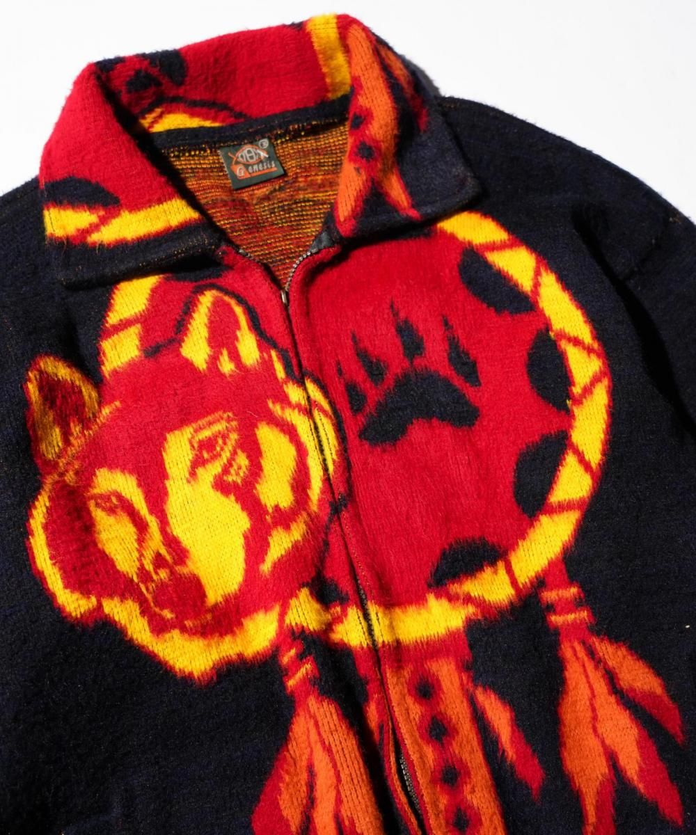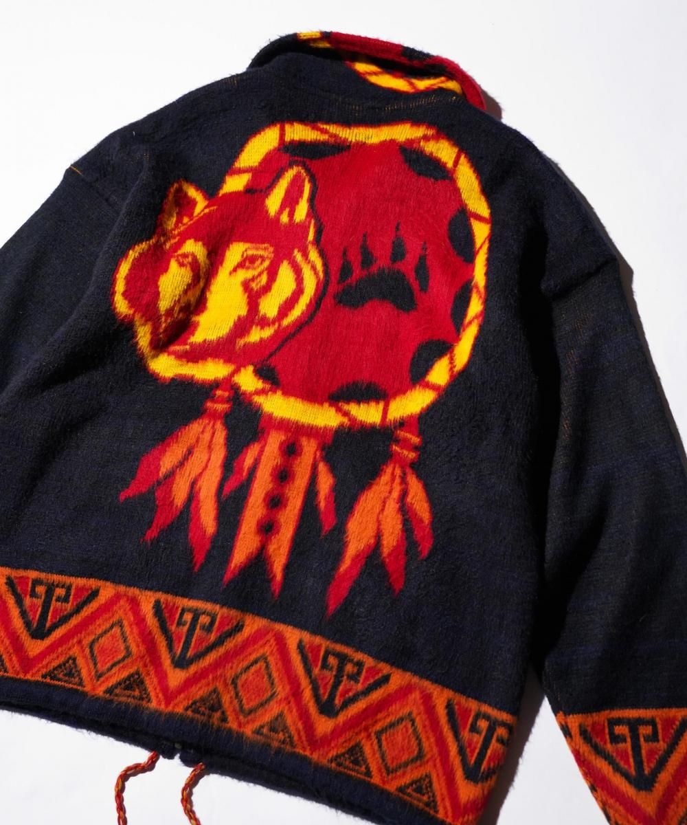 OLD / 1990'S MADE IN ECUADOR "WOLF & DREAMCATCHER" WOOL ZIP-UP SWEATER