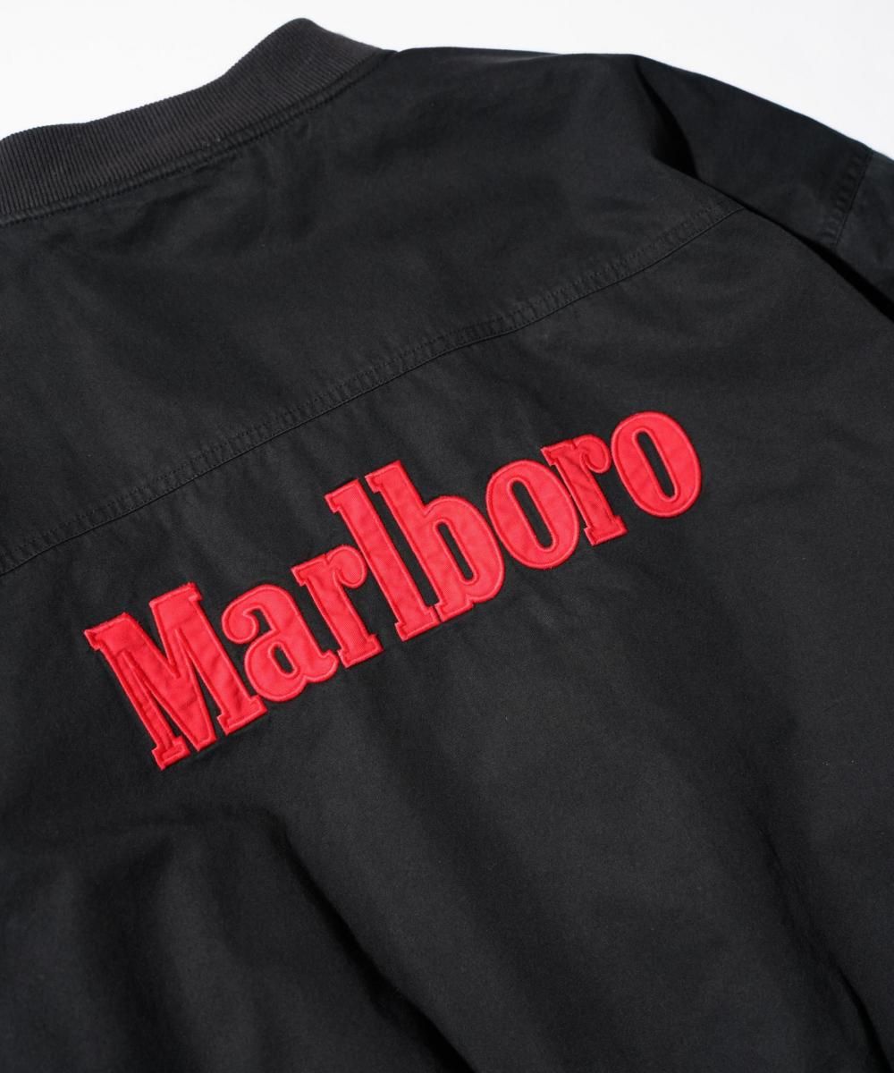 MARLBOROは1924年にアメリカで誕生したタバコブランド。特に1960年代以降、「マルボロ・マン」の広告キャンペーンで知られ、無骨で男らしいイメージを確立。ブランドイメージを活かしたウェアやギアも展開され、アウトドアやウエスタンテイストを基調としたデザインが人気を博した。90年代にはMarlboro Adventure Teamによるキャンペーンで限定配布されたアイテムが注目され、現在ではヴィンテージ市場でも高い評価を得ている。