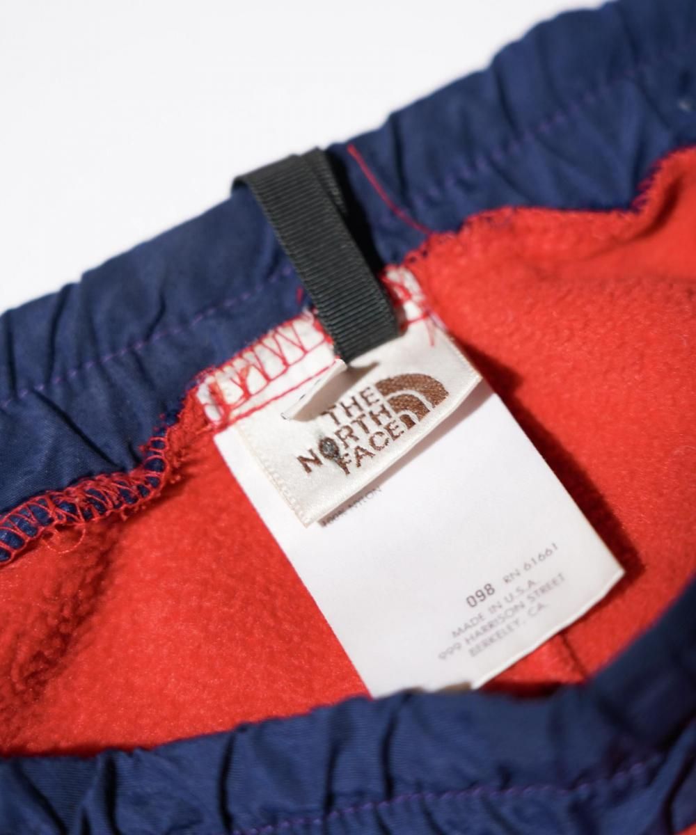 1980年代中期頃に製造された、アメリカ製のTHE NORTH FACE「アルマディラ フリースパンツ」。希少な“白地×茶ロゴ”タグを備えたブラウンラベル期の名作です。ナイロンシェルとフリースを組み合わせたハイブリッド仕様で、立体的な切り替えと機能的なデザインが特徴。アウトドアはもちろん、現代のタウンユースにもフィットするヴィンテージ・テックウェアの逸品。