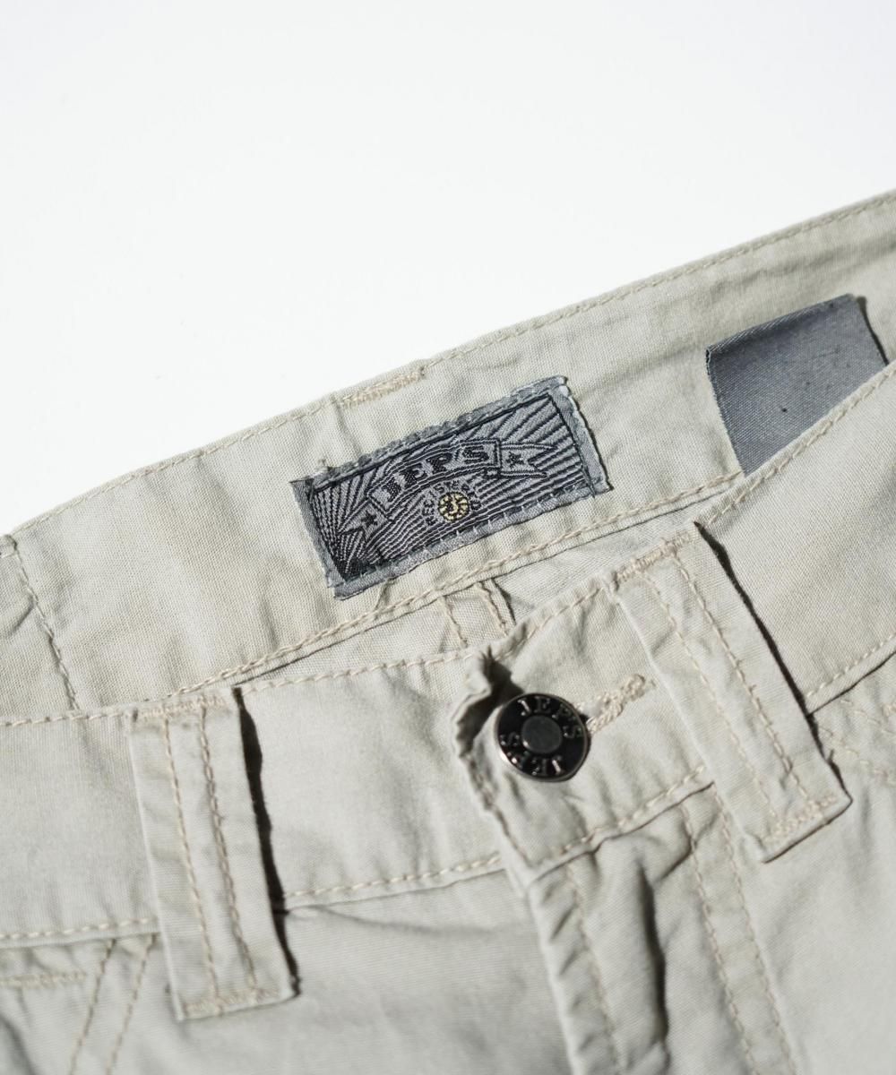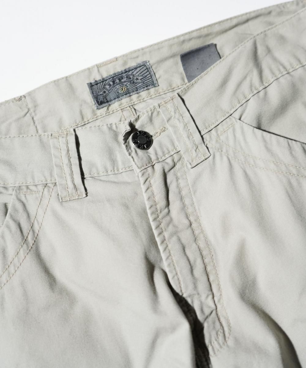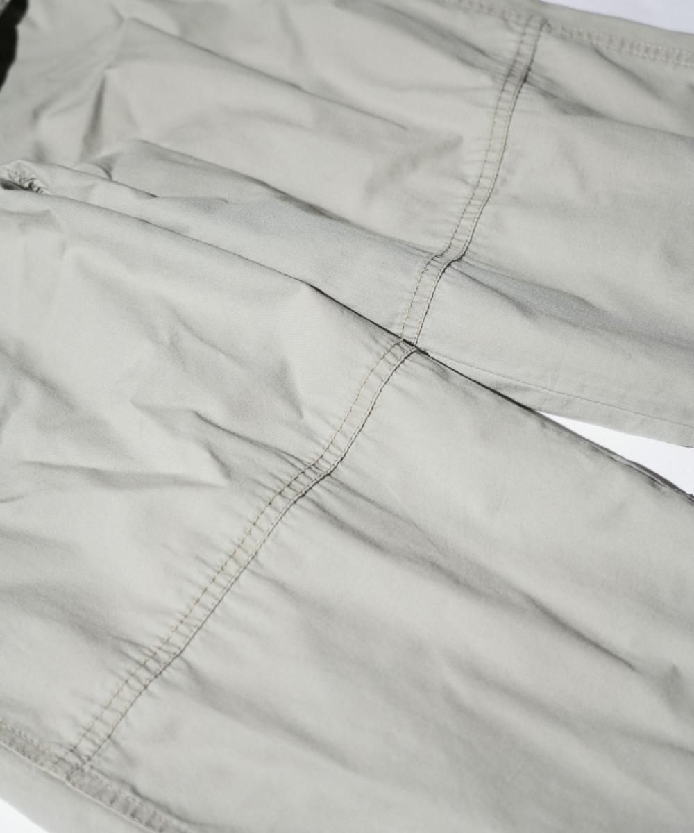 90年代らしい無骨さと遊び心を備えた太めの5ポケットパンツ。コットン100%の素材。特徴的なのは膝部分の切り替えデザインで、シンプルながらも個性を演出。裾にはドローコードが付き、シルエットの調整も可能です。程よいボリューム感とリラックスした履き心地は、当時のストリートスタイルを象徴する一本。古着好きにはたまらない、JEP’Sらしいユニークな一本です。