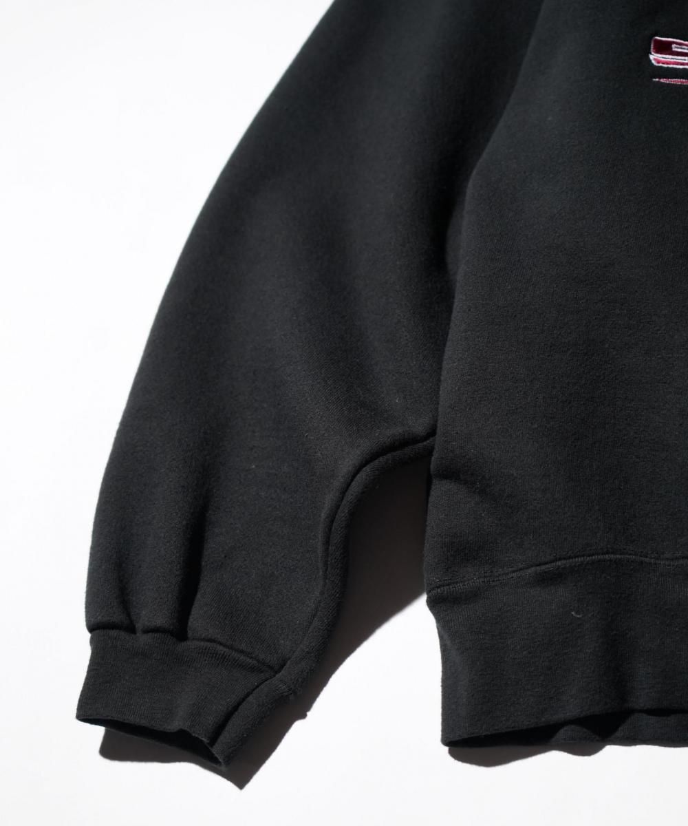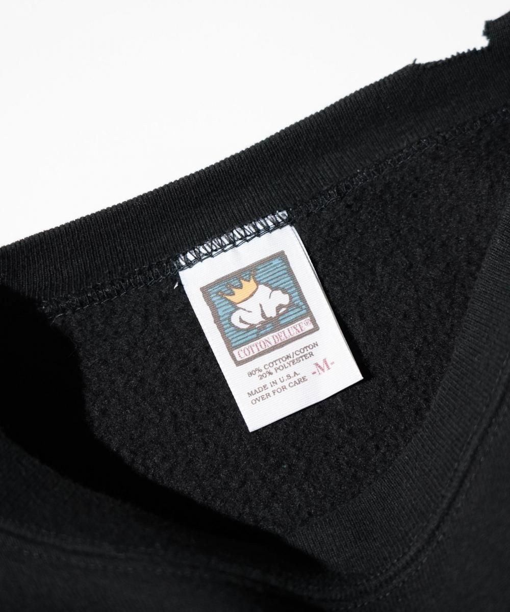ボディとなるスウェットのブランドのANVILは1976年にアメリカで設立された老舗アパレルブランドで、主にヘビーウェイトのTシャツやスウェットを製造しています。高品質なコットンやコットン混紡素材を用い、「MADE IN USA」製品を多く展開していることで知られています。1980〜90年代にはストリートファッションやバンドTシャツの定番ブランドとして人気を博し、耐久性と着心地の良さが評価されています。現在もヴィンテージ市場で高い支持を集めるブランドです。