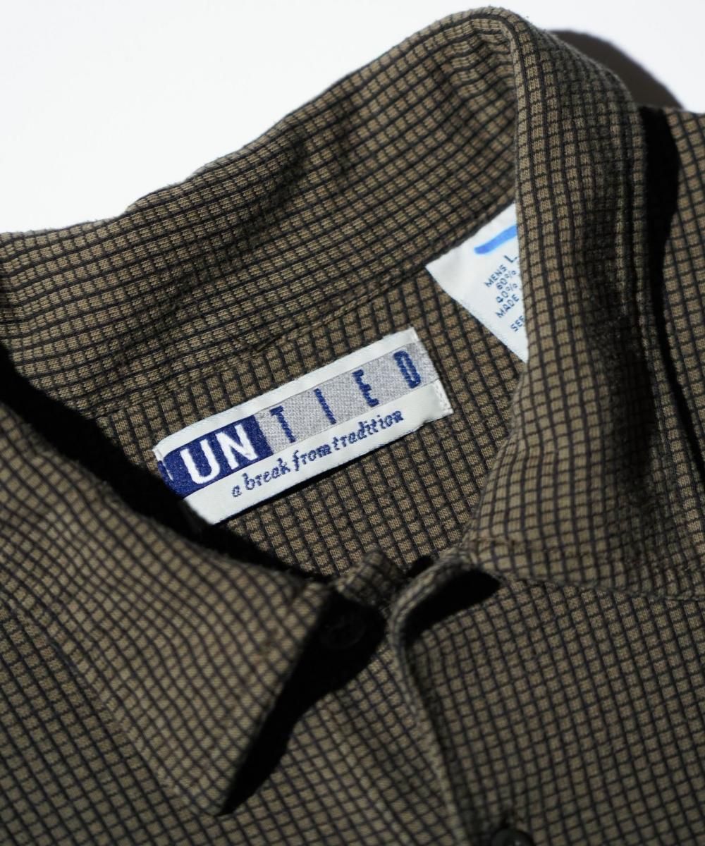 「UNTIED 」は、1990年代からアメリカ市場を中心に展開されたカジュアルウェアブランドです。チェックシャツをはじめ、多彩なパターンのシャツ類が主力ですが、パンツやポロカットソーなど幅広いアイテムも製造されています。素材はレーヨンやポリエステルの混紡が多く、軽やかな着心地と快適なフィット感が特徴。ブランドコンセプトの「a break from traditional」は、従来の枠にとらわれない自由なスタイル提案を象徴しており、当時のアメリカのカジュアルファッションを色濃く反映しています。