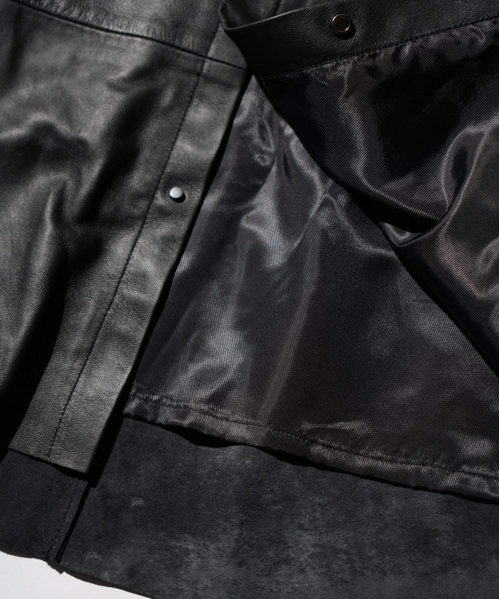 柔らかく薄手なリアルレザーを使用することで、着用しやすく、落ち感も楽しめるアイテムに仕上がっています。