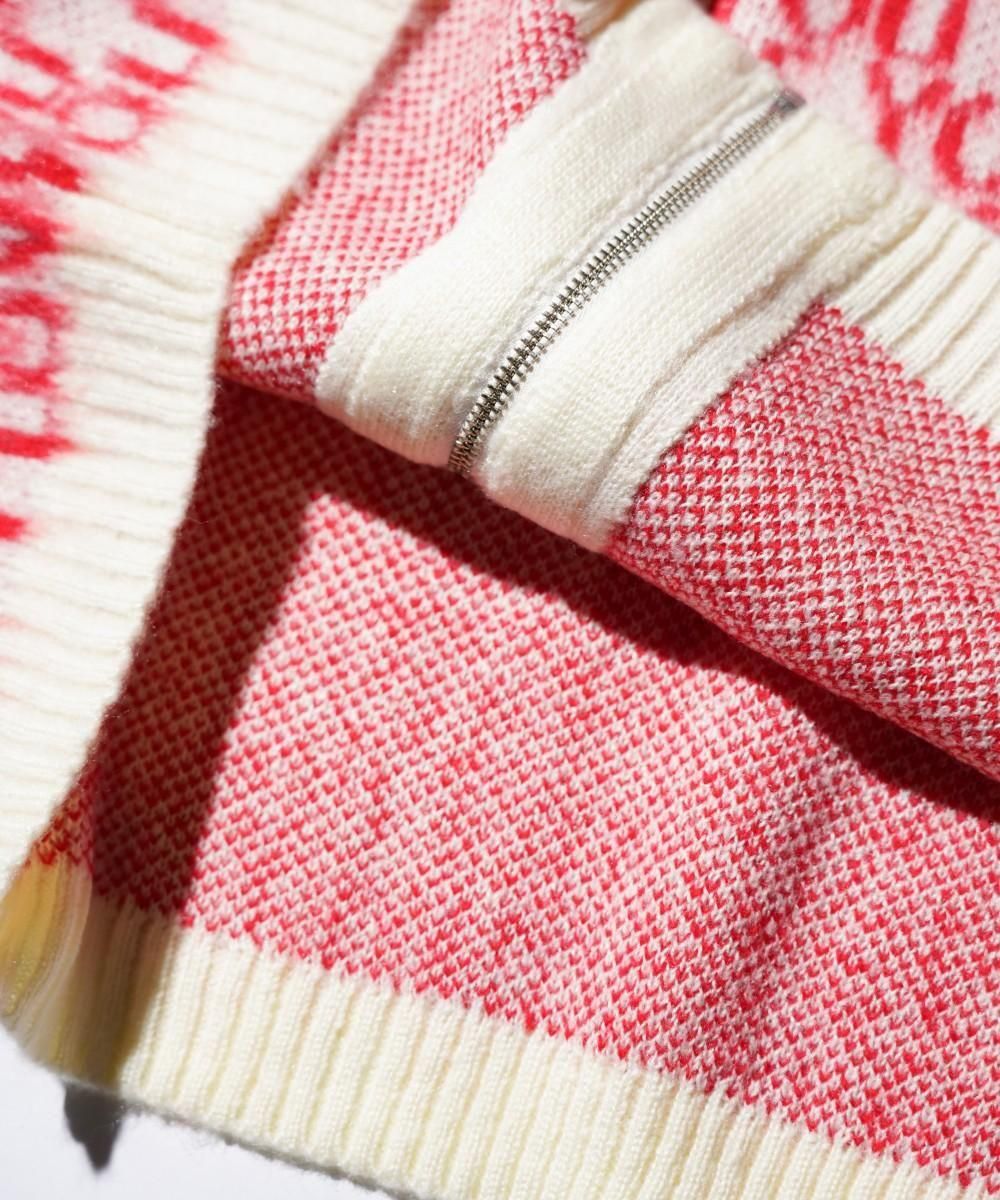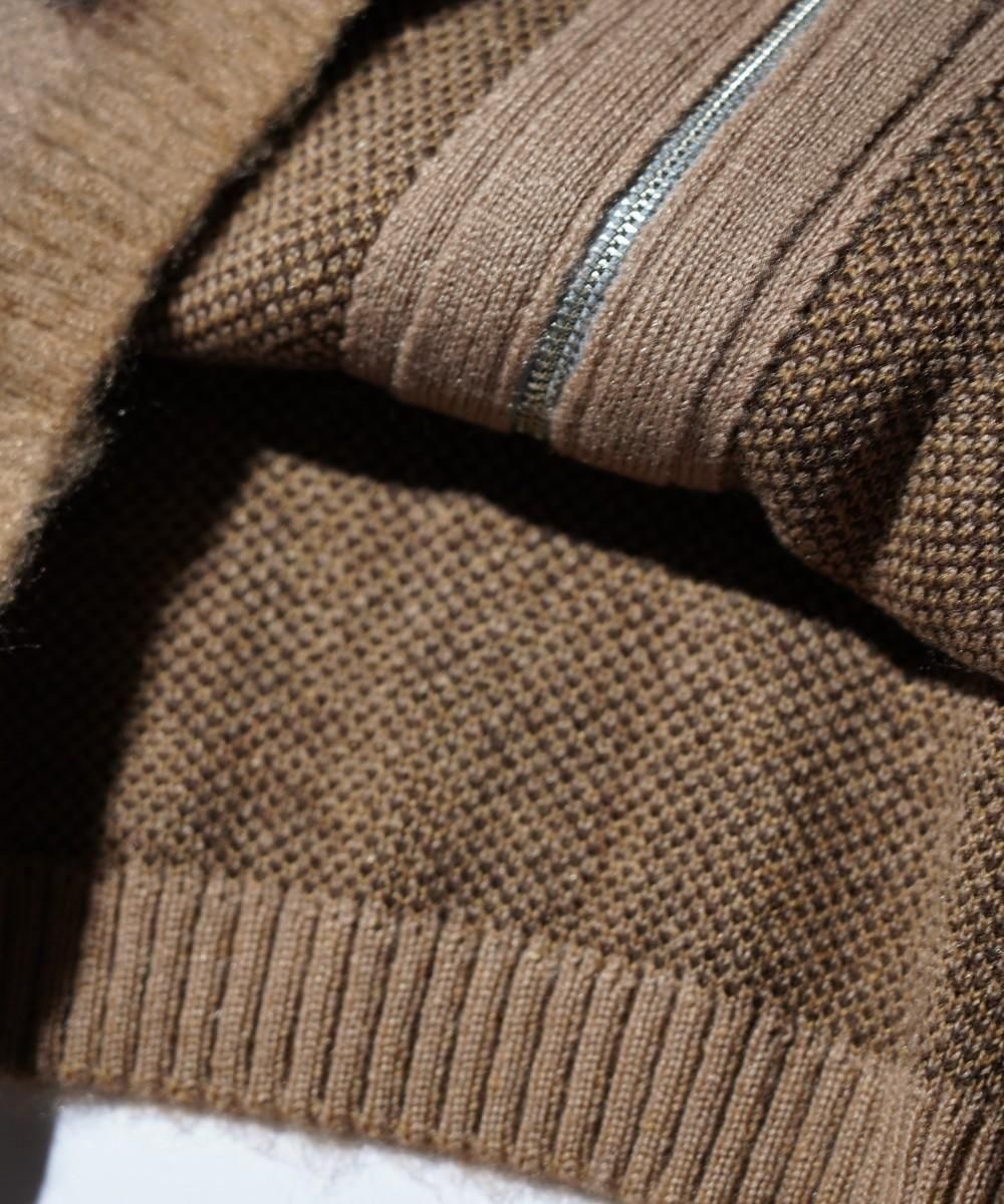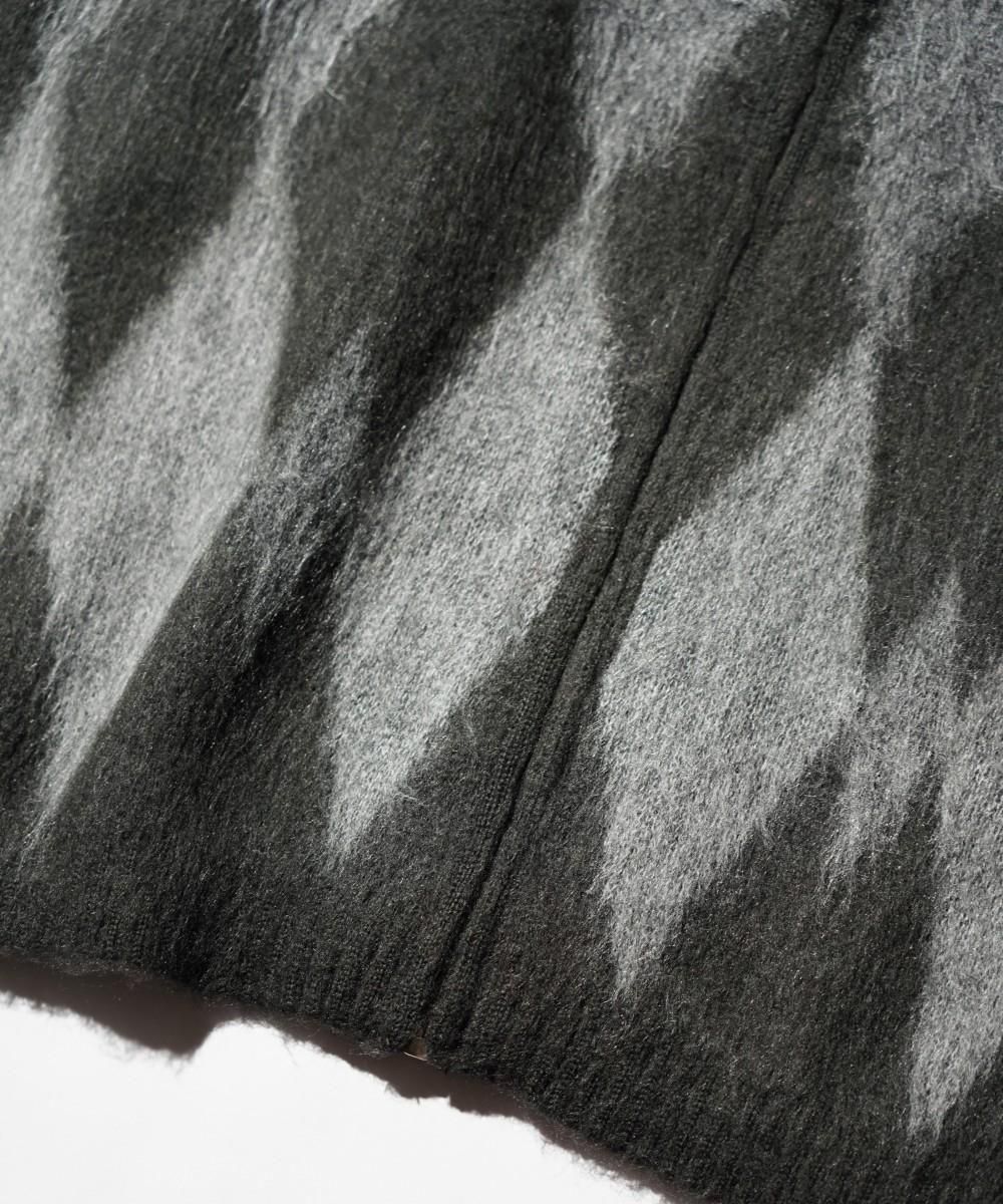 モヘア調アクリル糸でヴィンテージモチーフの様々な柄をジャガードで表現しています。