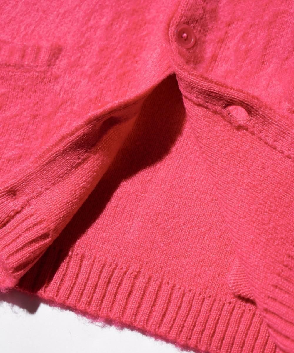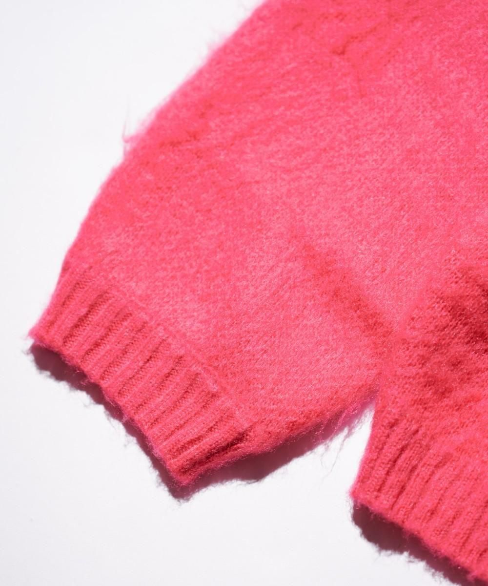 モヘア調アクリル糸で古着の様な風合いを再現。