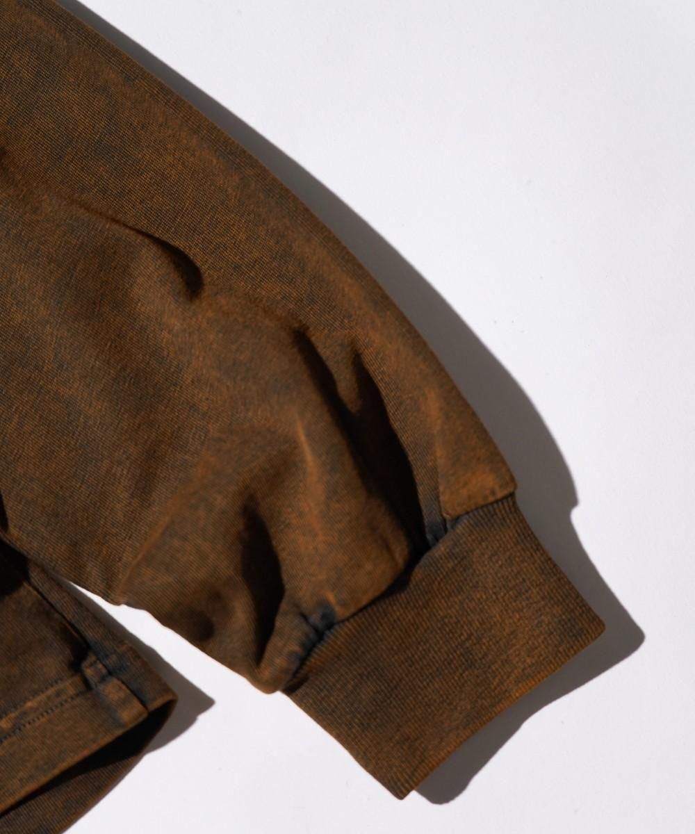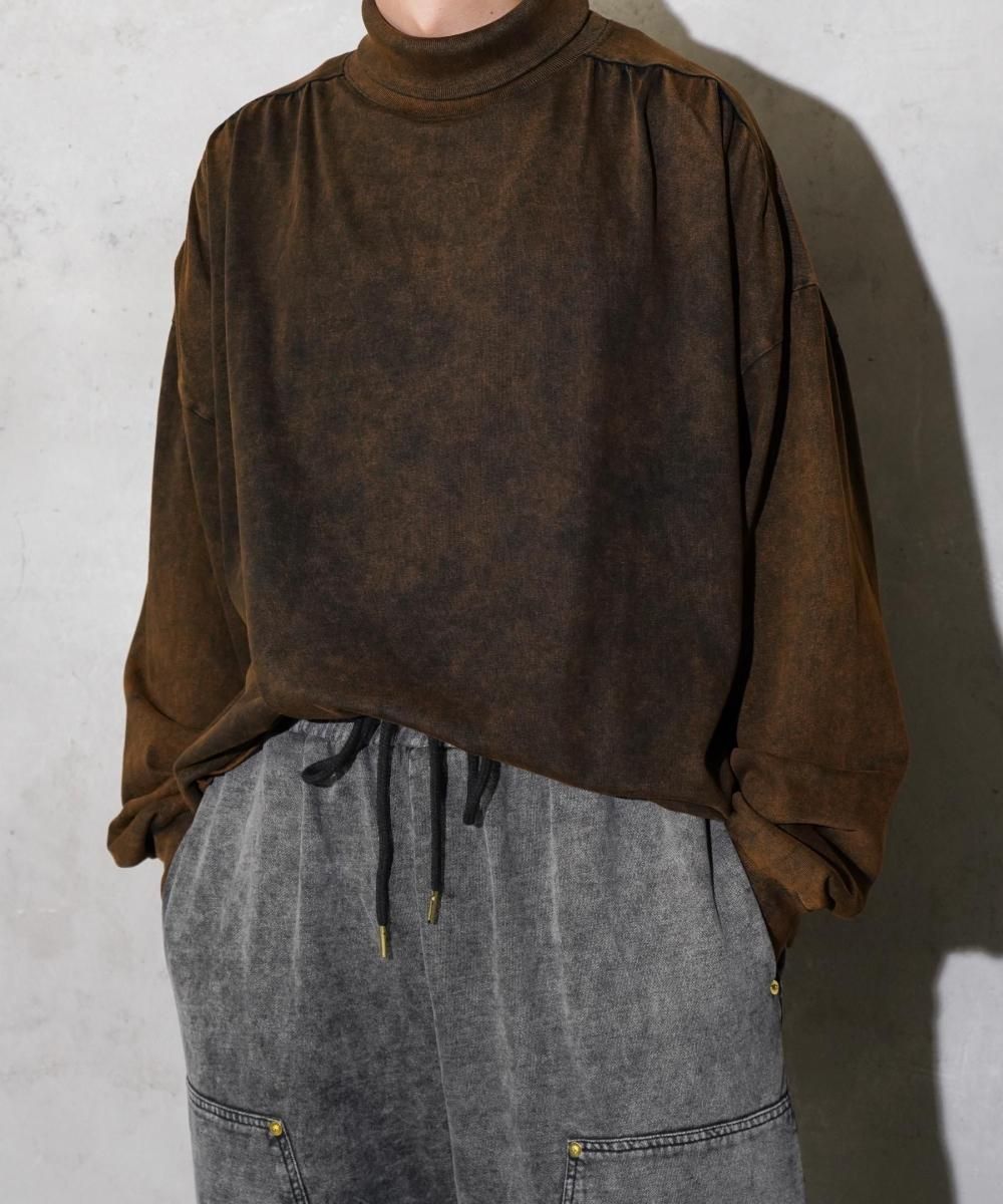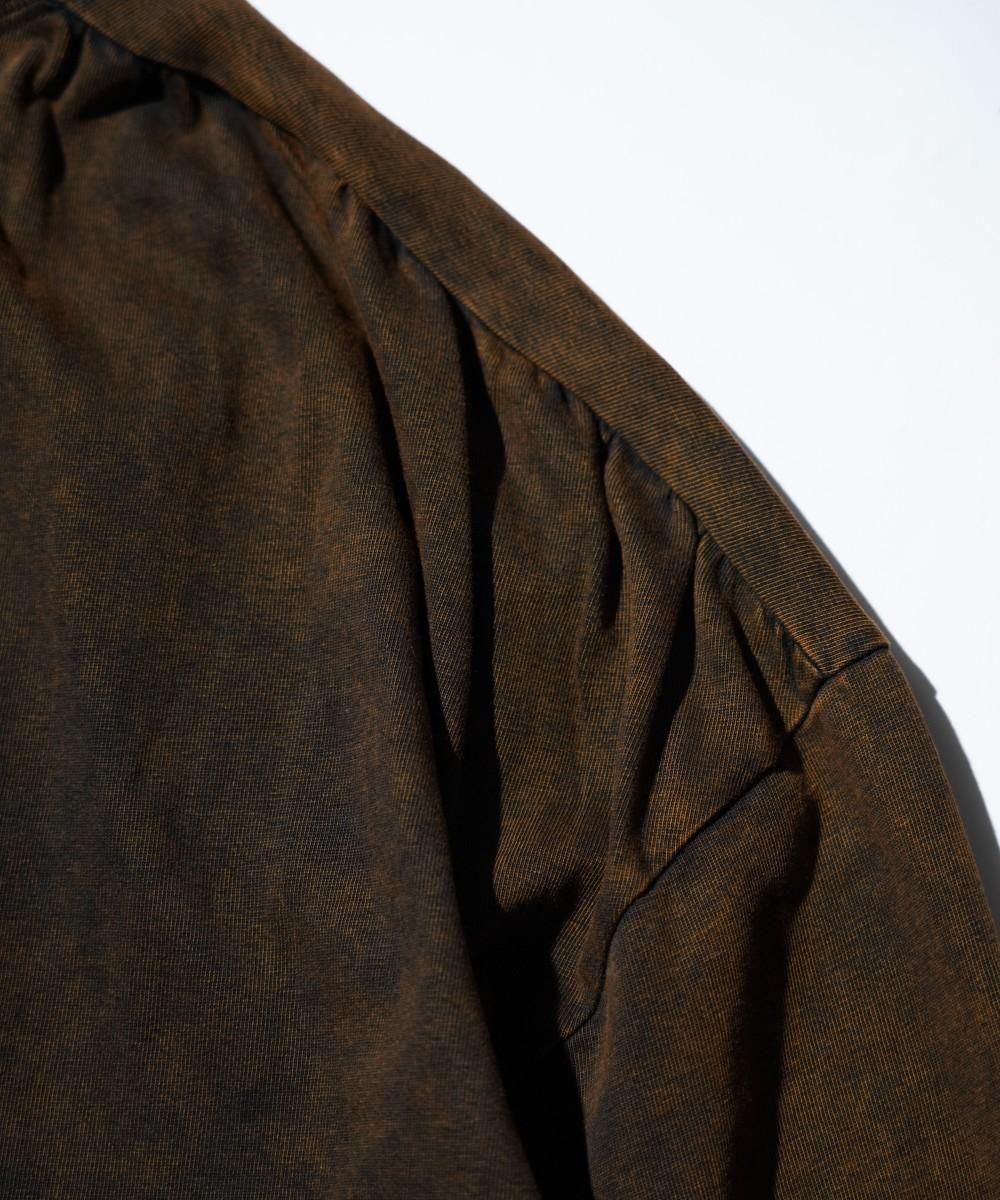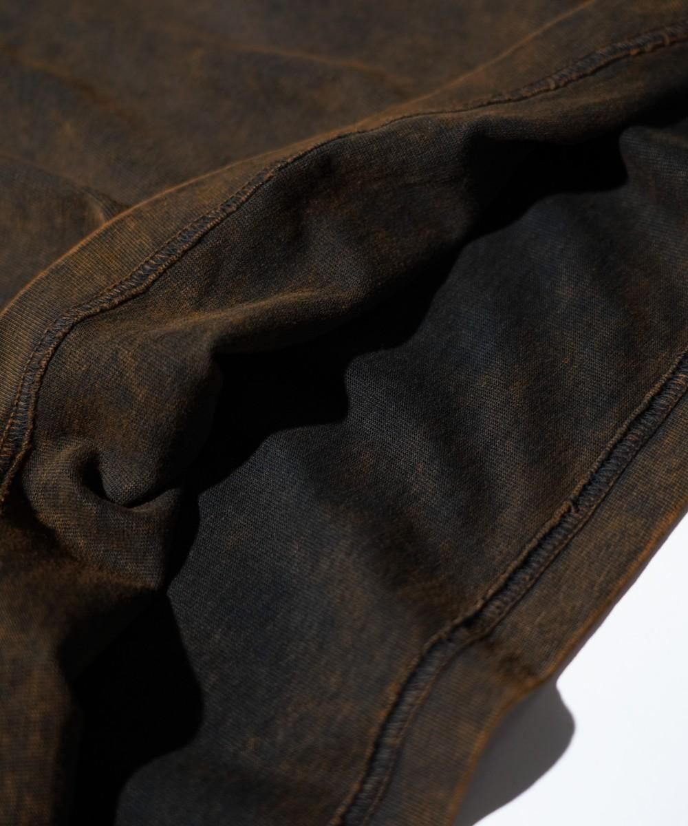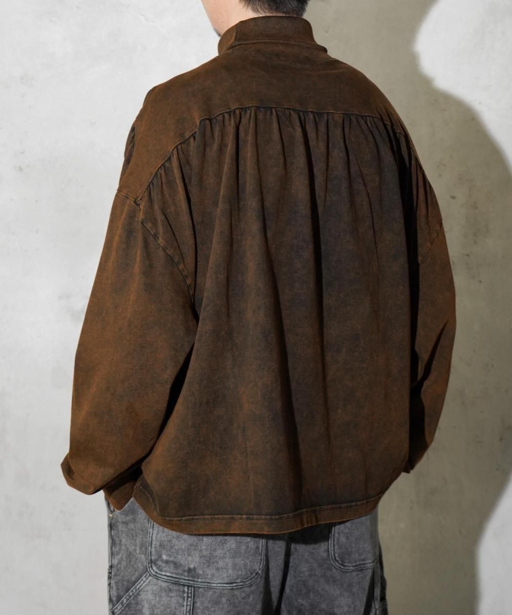 フロント・バックのギャザーと、独特の色味に仕上げるための加工感が特徴的。