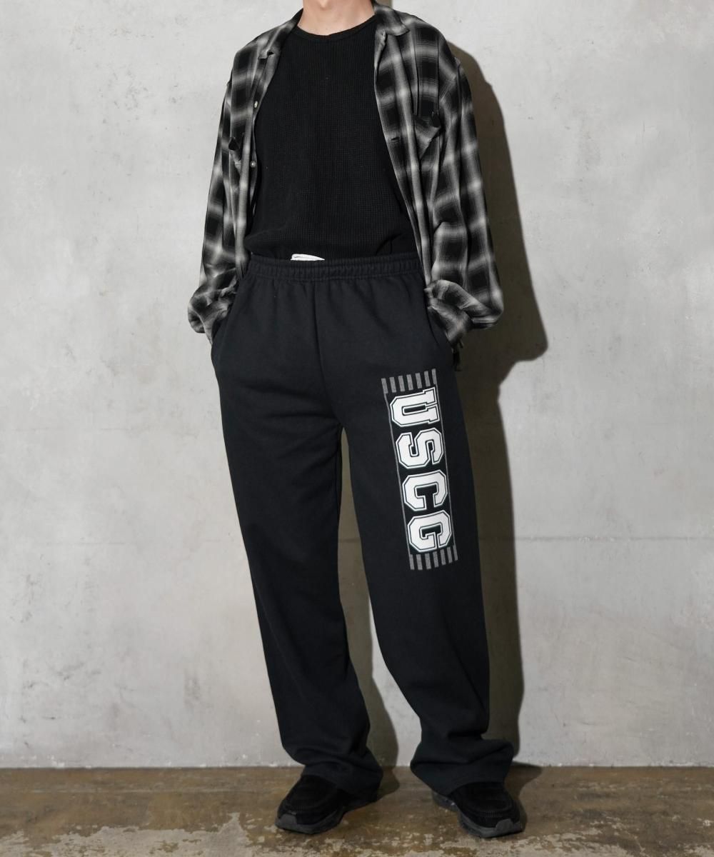 フロント左ももにUSCGのプリントを施したスウェットパンツ。