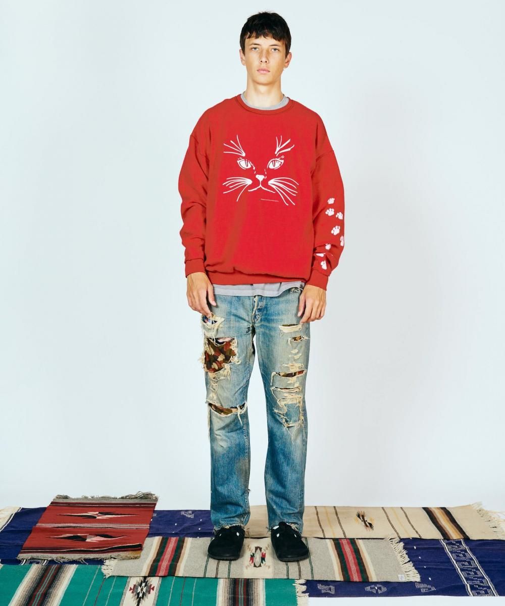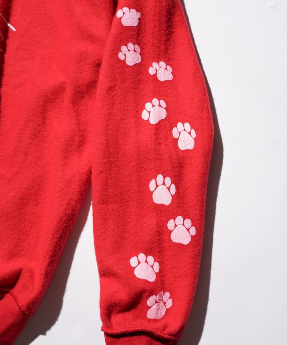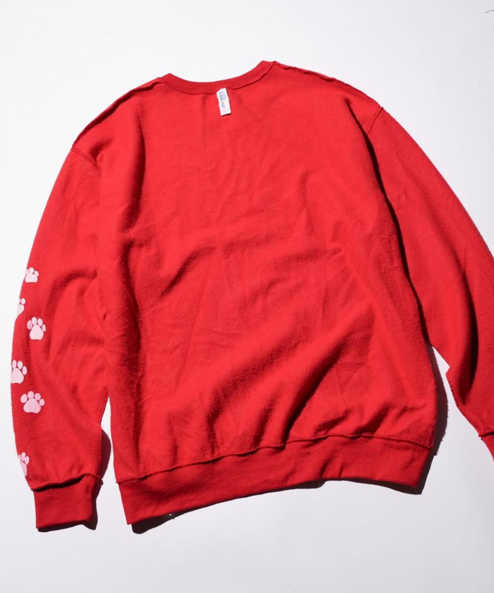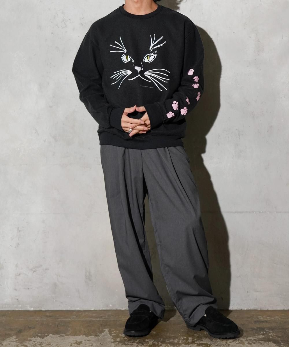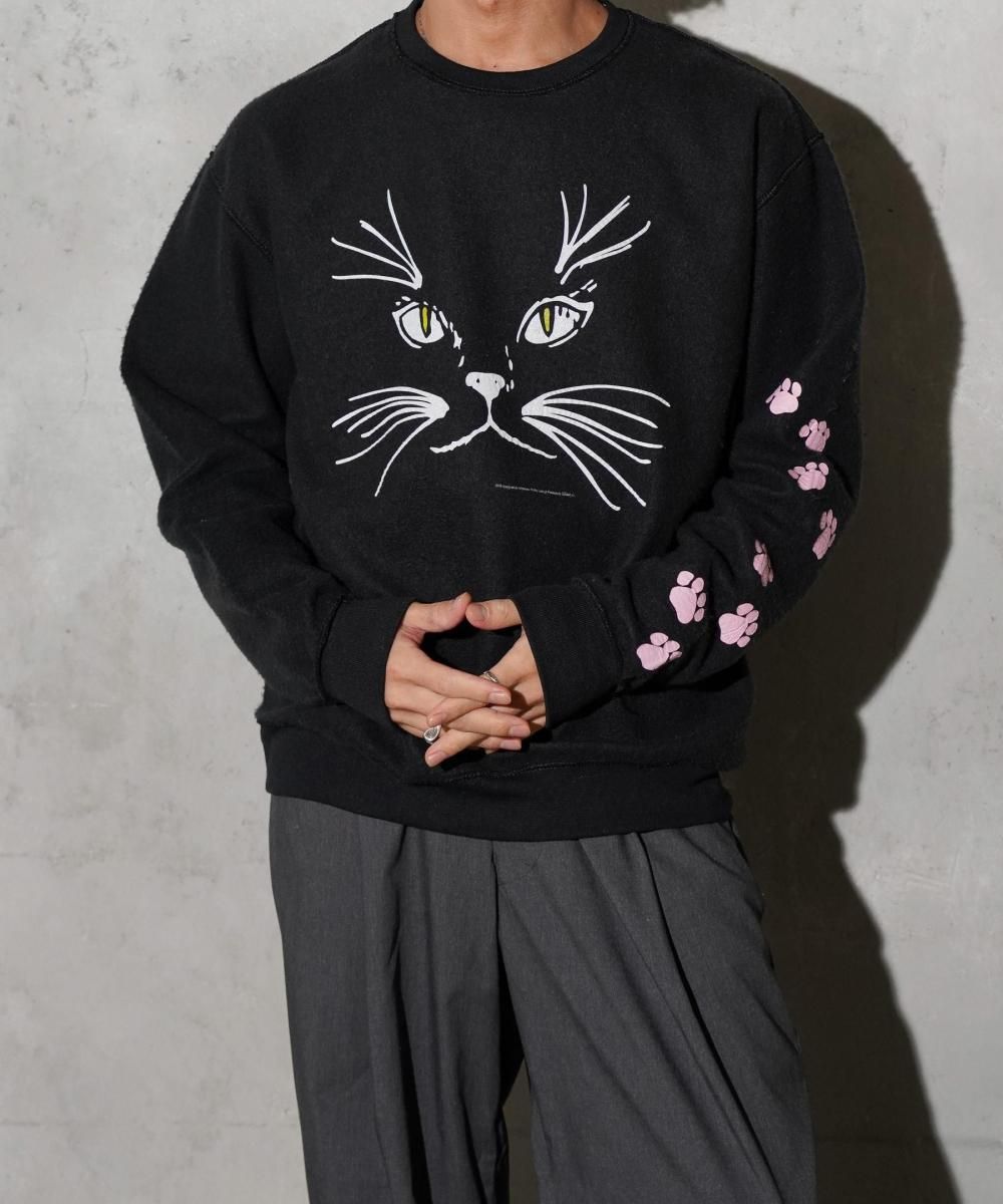 フロントの猫と肉球の袖プリントが目を惹く一着となっています。