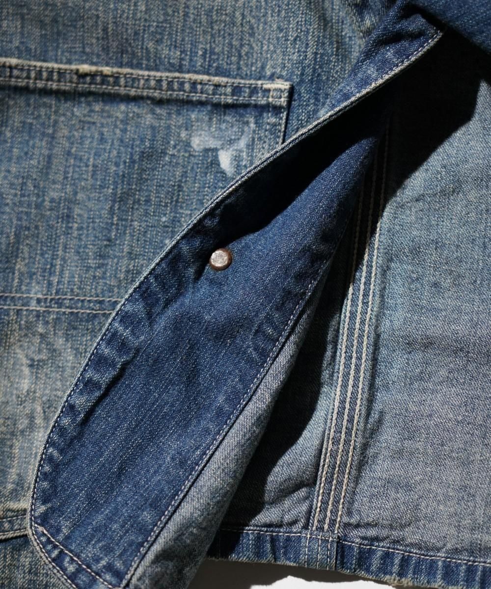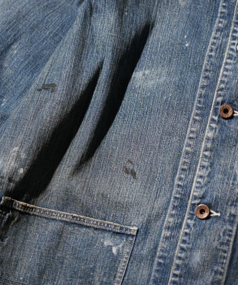 ウォッチポケットや、ポケットの配置、40年代以前特有のカバーオールの型紙、縫製仕様も当時の意匠を踏襲し、時代背景まで映し出す仕上がりとなっている。