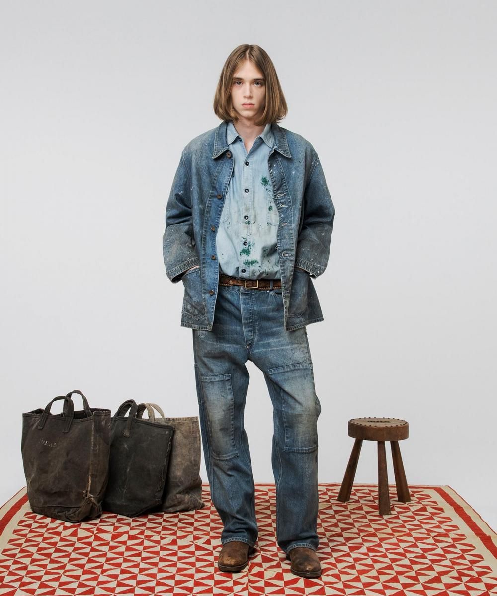 重厚な質感と経年で深まったかの様な加工によるリアルな表情は、当時の作業着が持つ機能美そのもの。