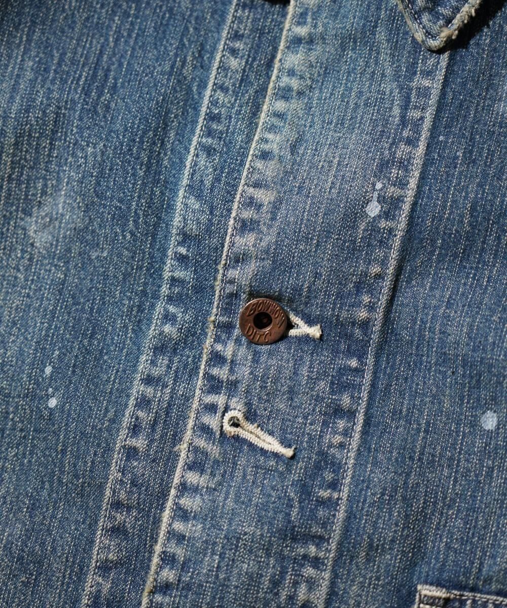 90年代からのヴィンテージ市場で確固たるものとなった30年代を感じさせるワークデニムに、無骨で存在感ある鉄製ワークボタンを採用。