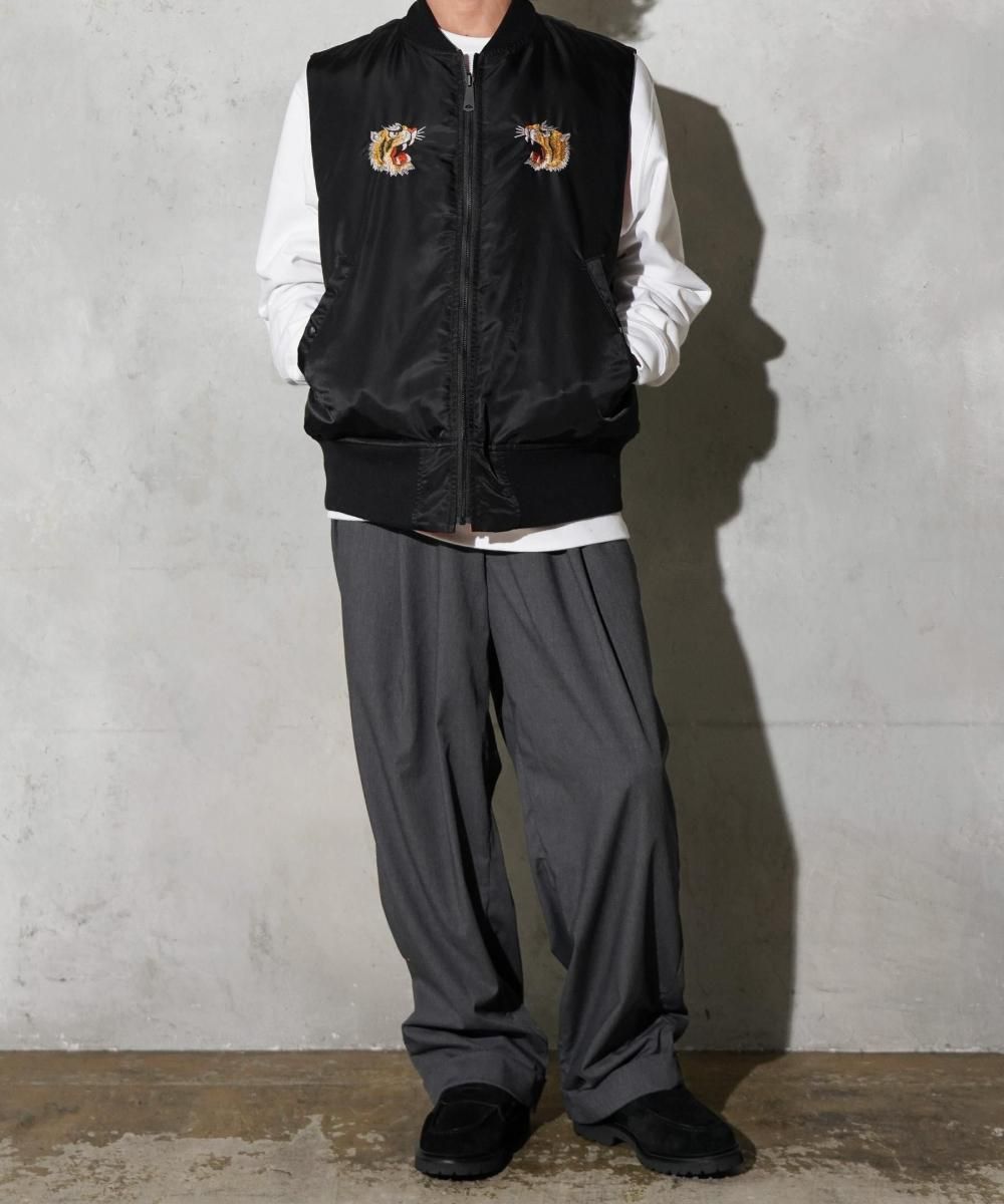 MA-1タイプのベストに、スカジャンに見られる刺繍を施したアイテム。
