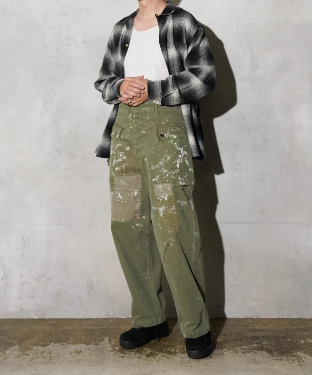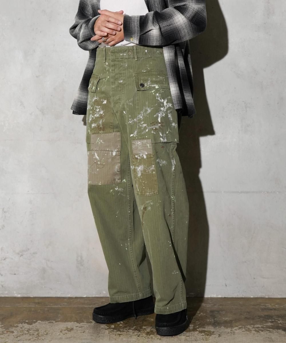 BOW WOW / PAINT STAINED USMC P-44 HBT TROUSERS
