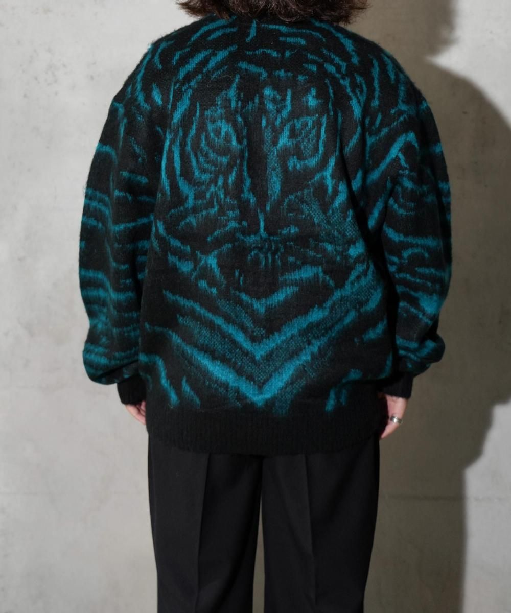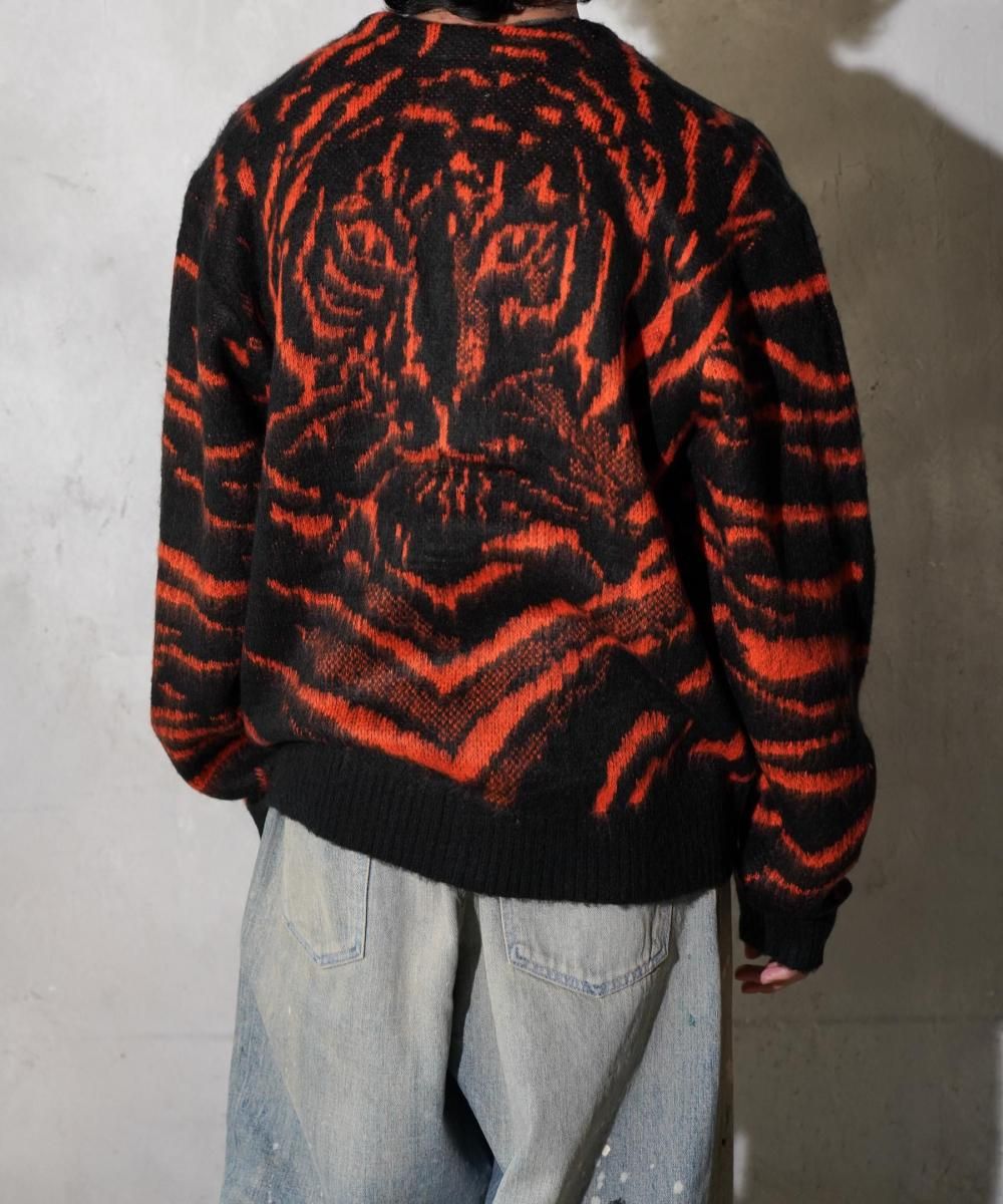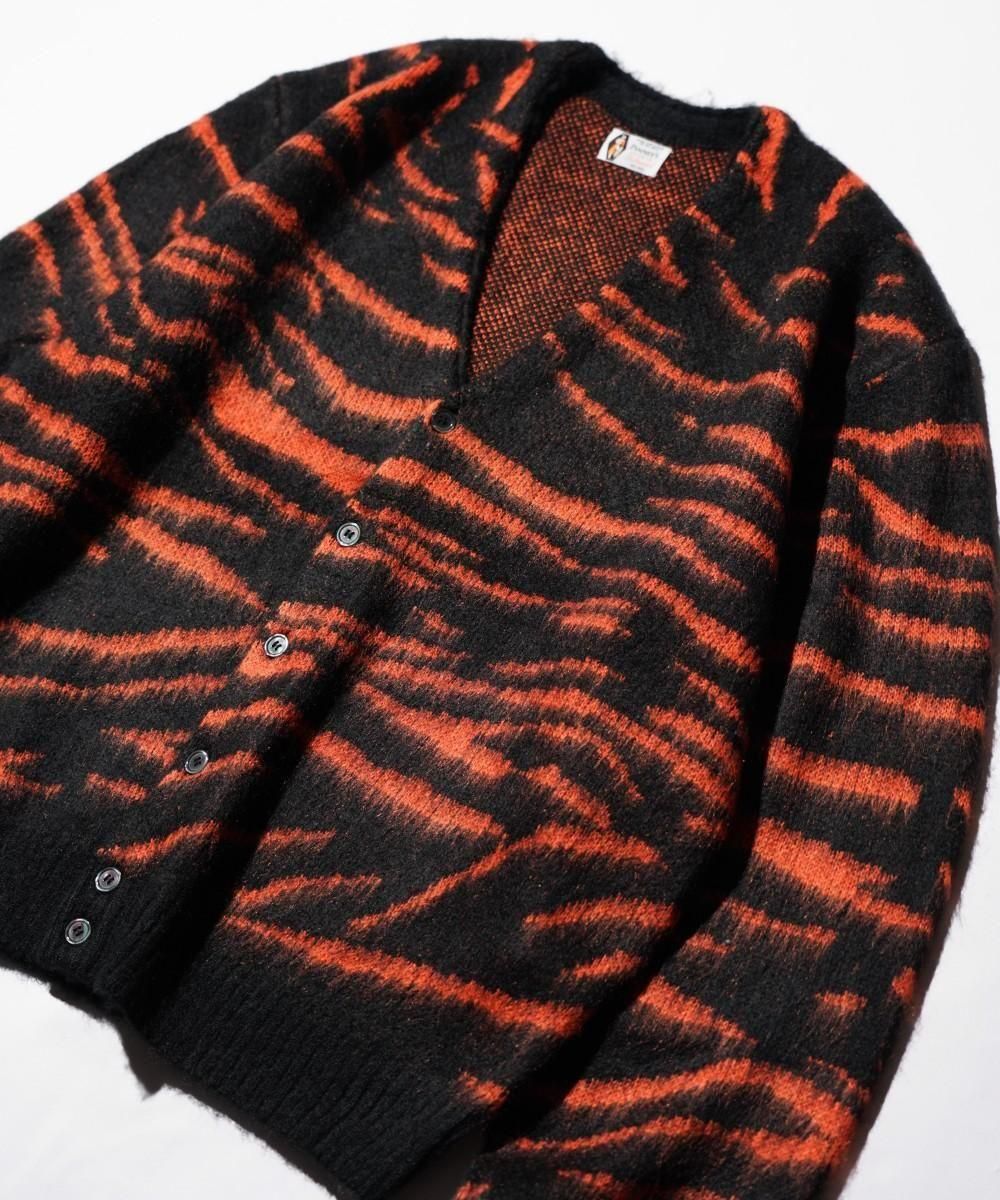 ヴィンテージライクなタイガー柄のシャギーニッとカーディガン。