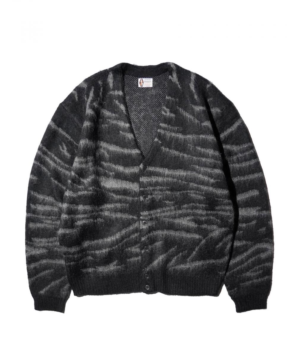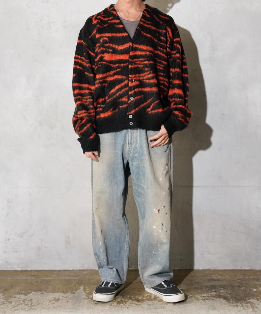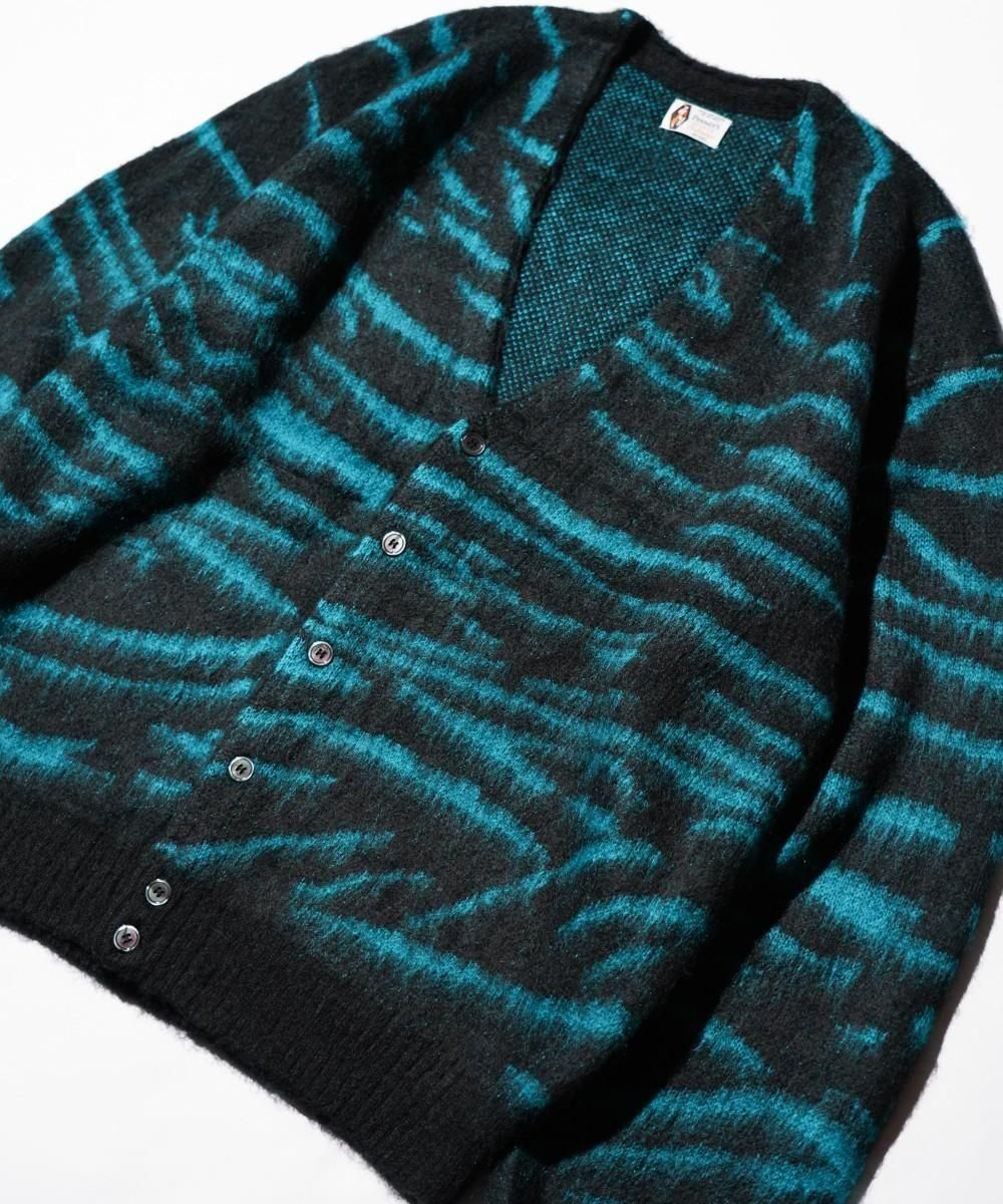 ヴィンテージライクなタイガー柄のシャギーニッとカーディガン。