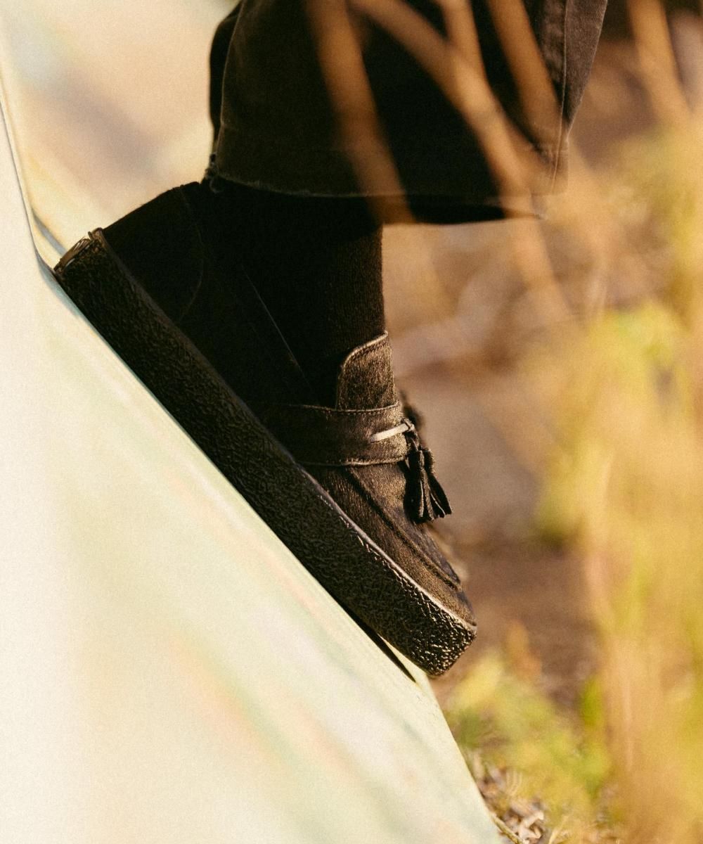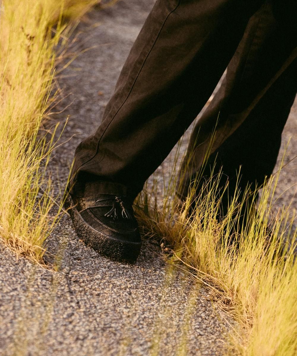 ・VM002のラストと質感のあるフォクシングテープをベースに、スリッポンとローファーを組み合わせたハイブリッドデザインです。