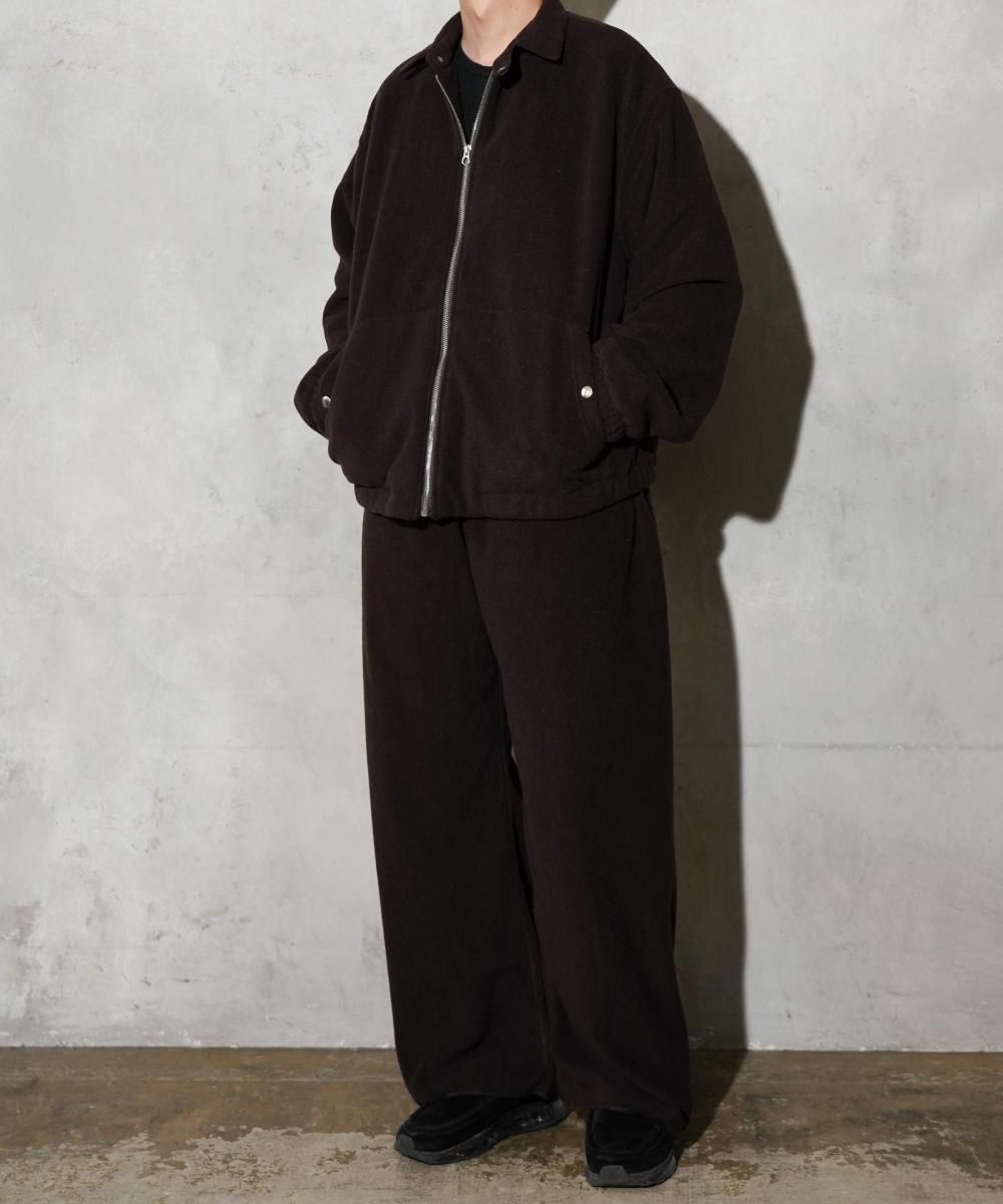 程よい厚みのフリース素材を使用したワイドイージーパンツ。