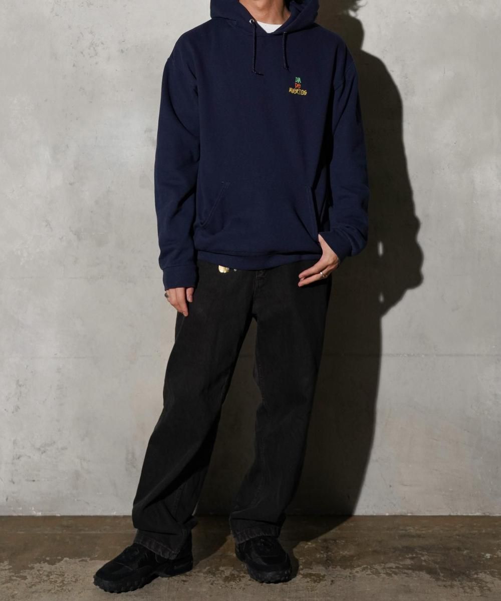 アイキャッチなバックプリントを施したプルオーバーフーディ。