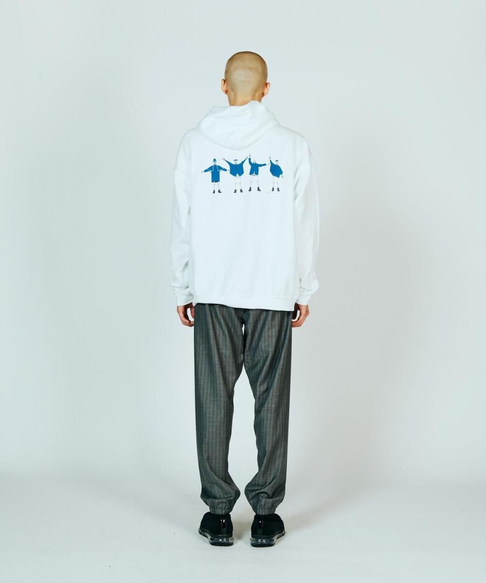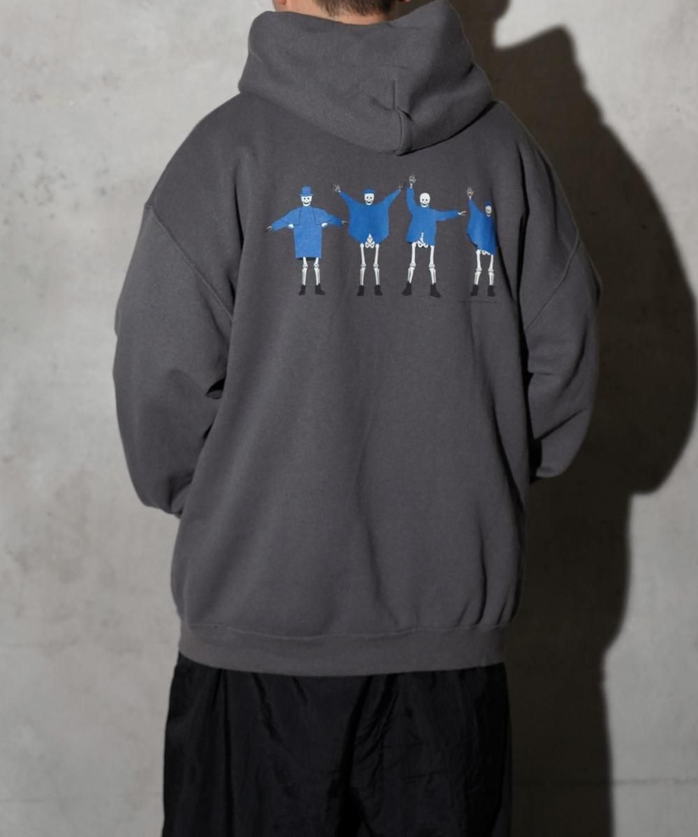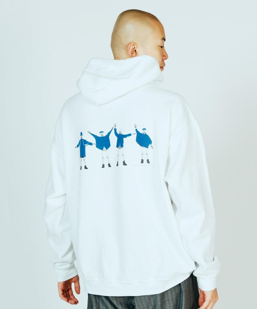 アイキャッチなバックプリントを施したプルオーバーフーディ。