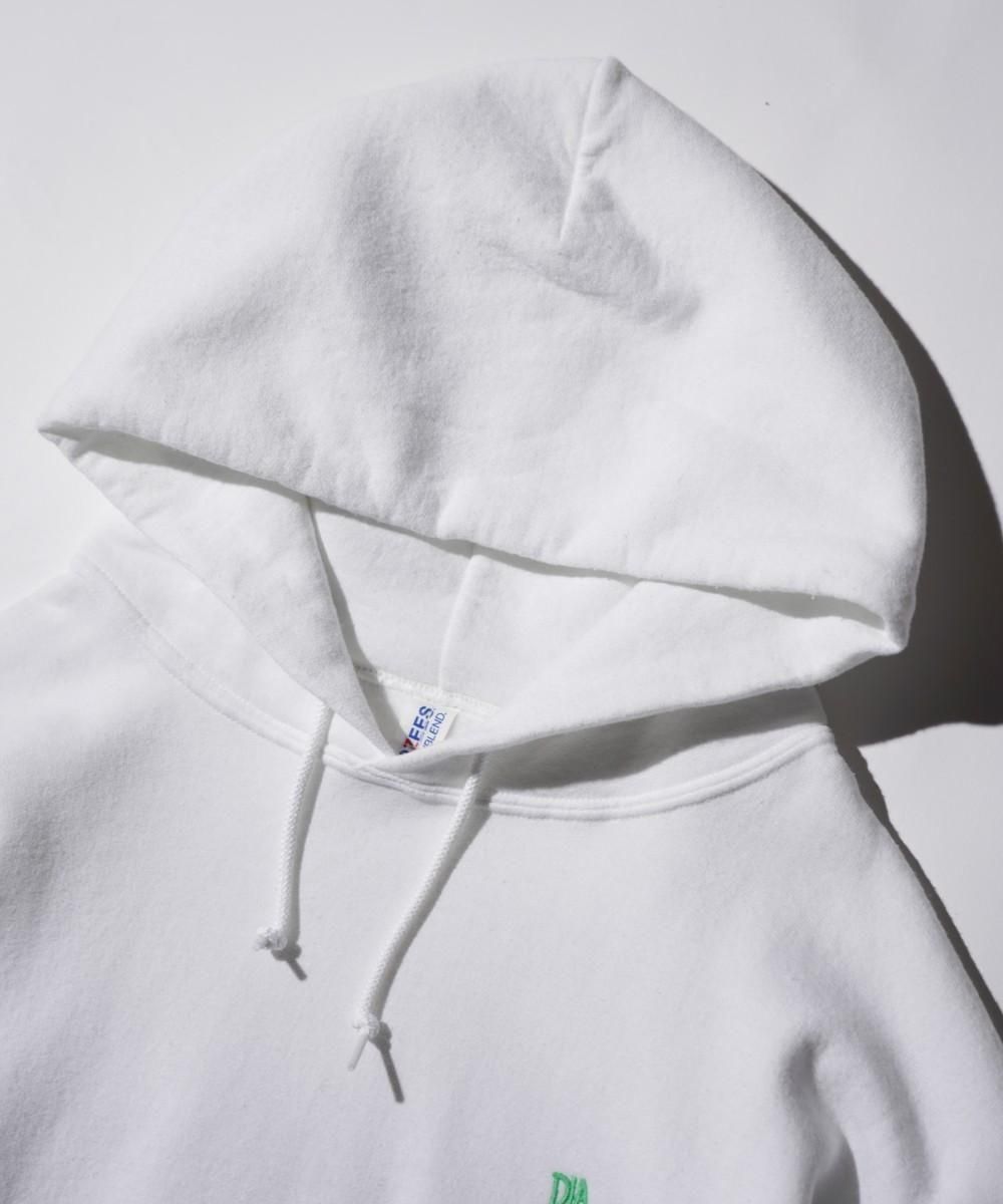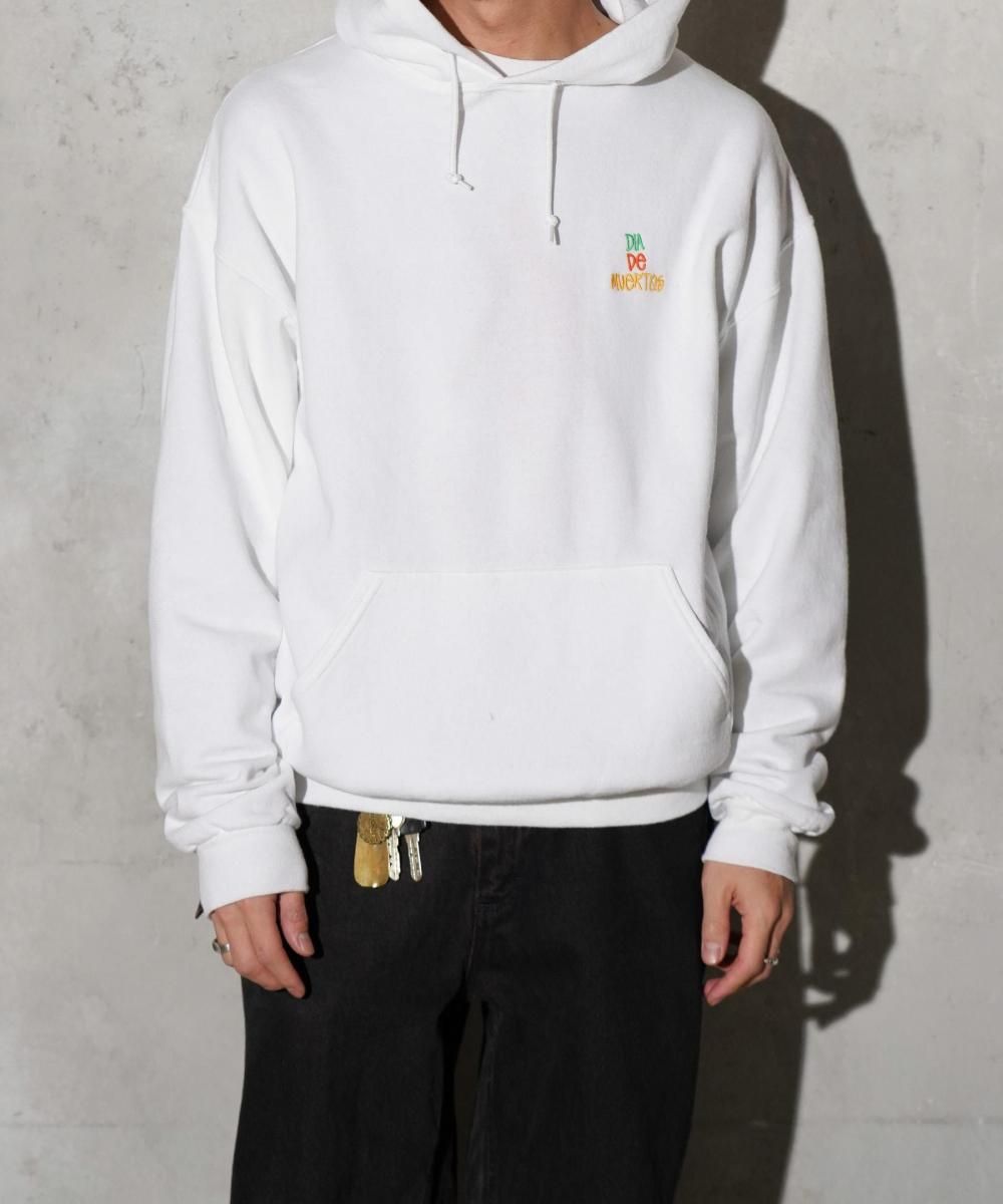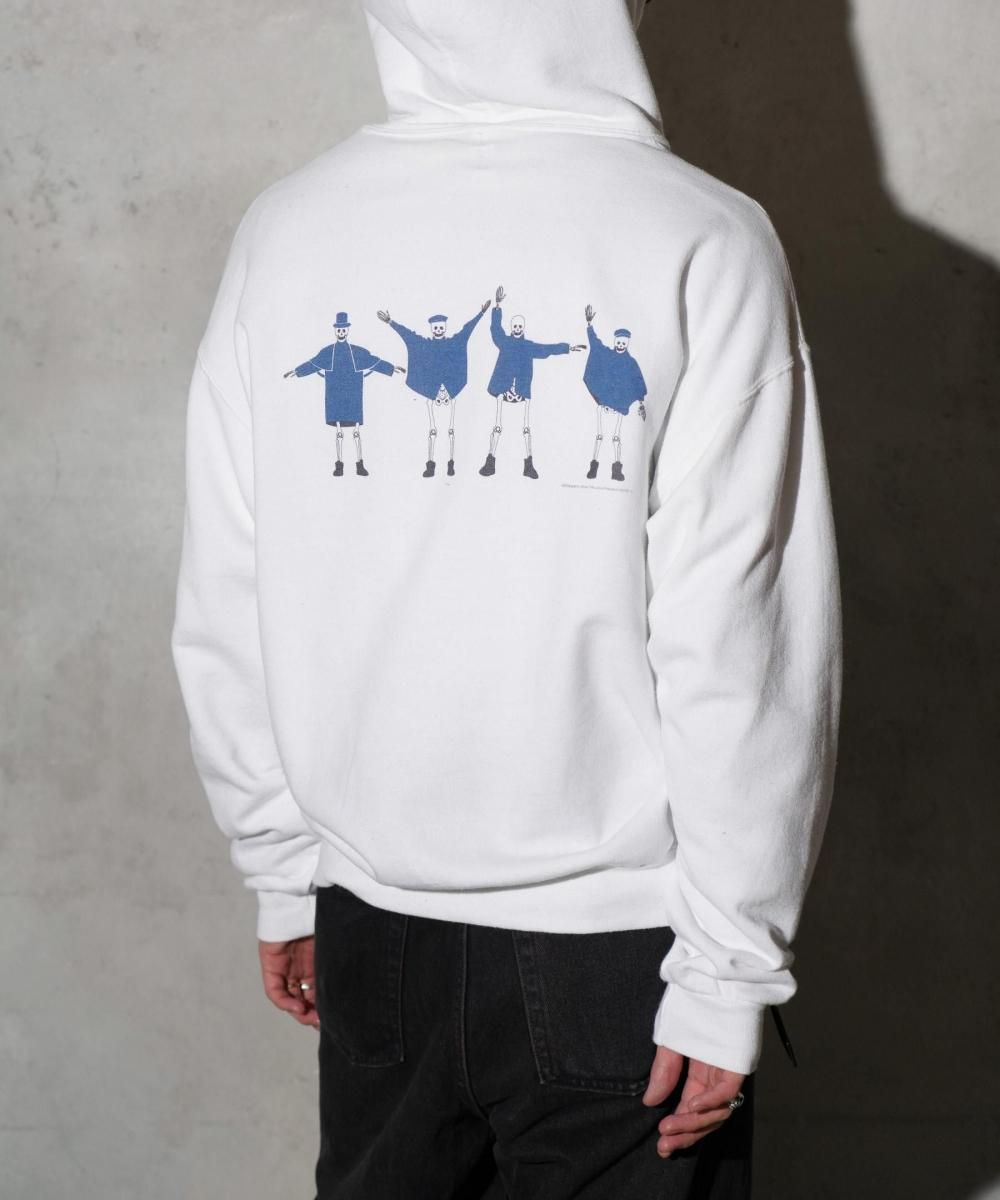 アイキャッチなバックプリントを施したプルオーバーフーディ。