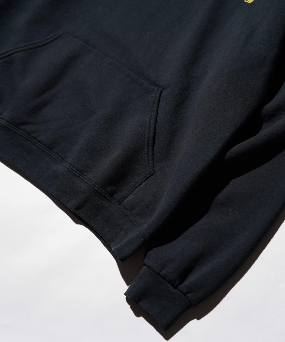 アイキャッチなバックプリントを施したプルオーバーフーディ。