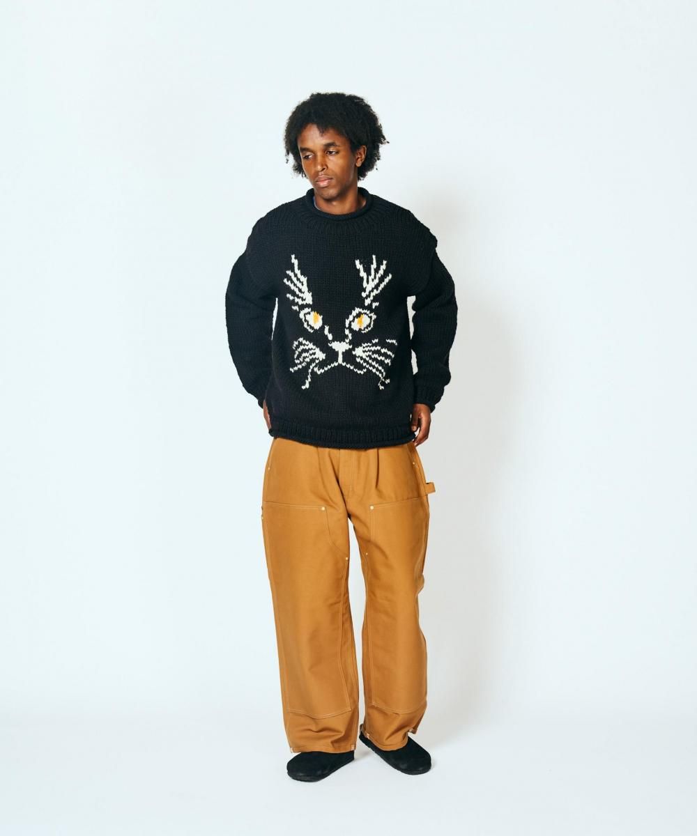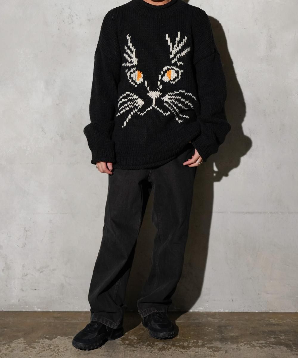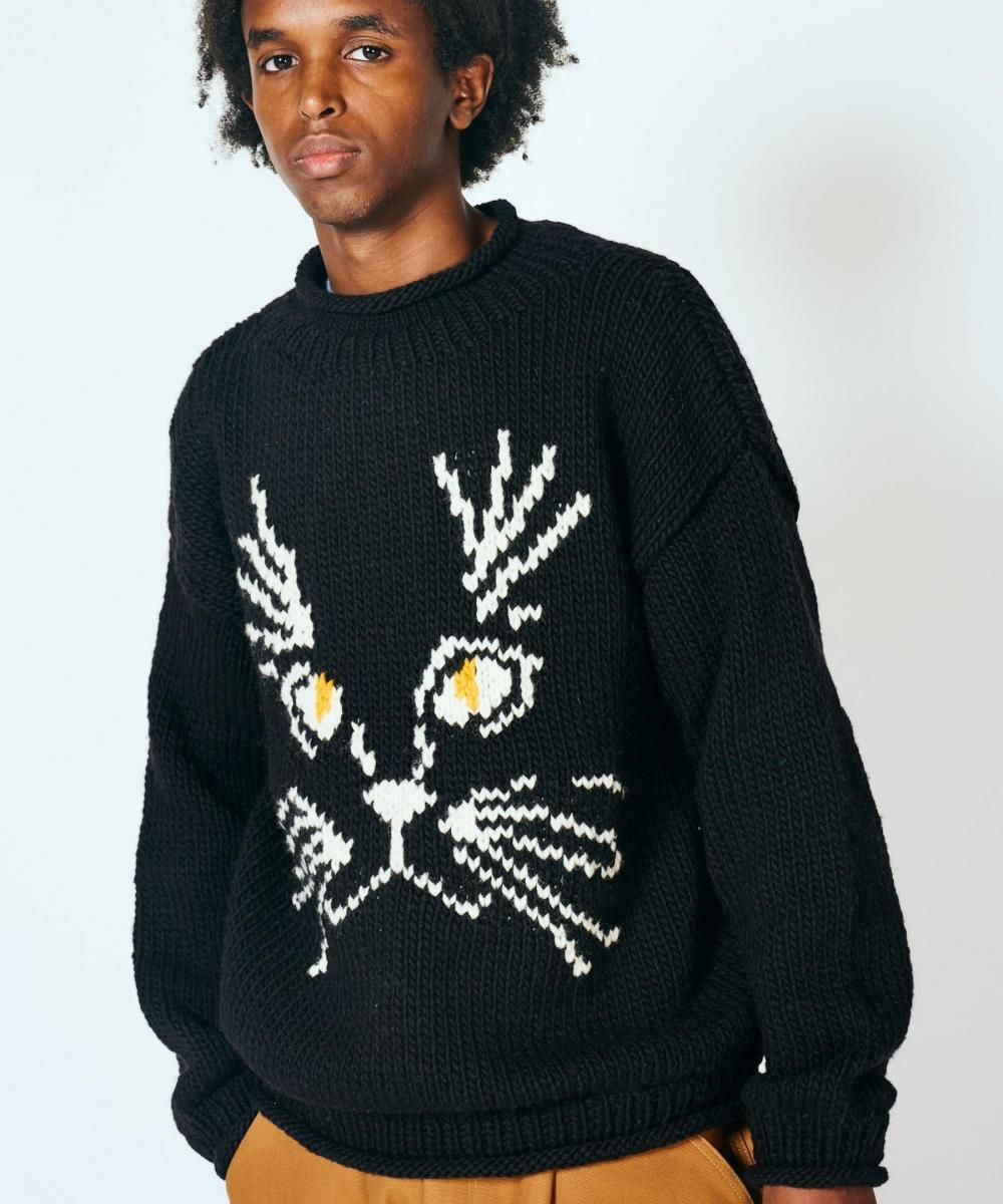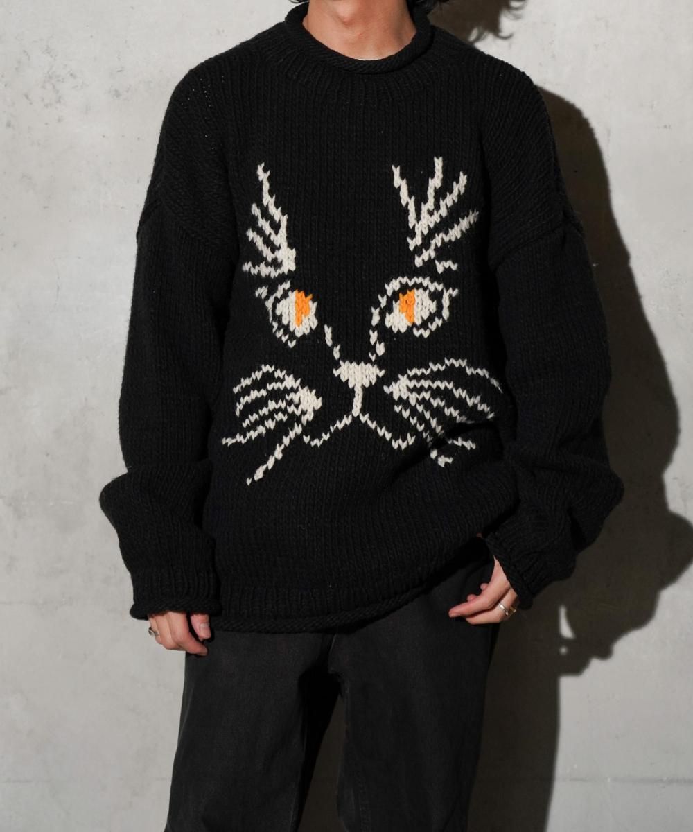 THRIFTY LOOK / HAND KNITTING "CAT" ROLL NECK SWEATER