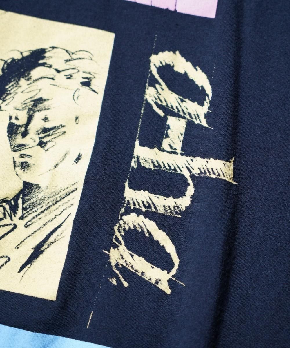 ※こちらの商品は1点物となります。USED加工の商品です。生地のムラ、シミ等はUSED加工ならではのリアル感を追求しています。必ずしも袖の長さが左右一致しているわけではありません。また、プリントやボディの色味につきましても特性上若干の色ブレがございます。ご理解、ご了承の上ご購入下さい。