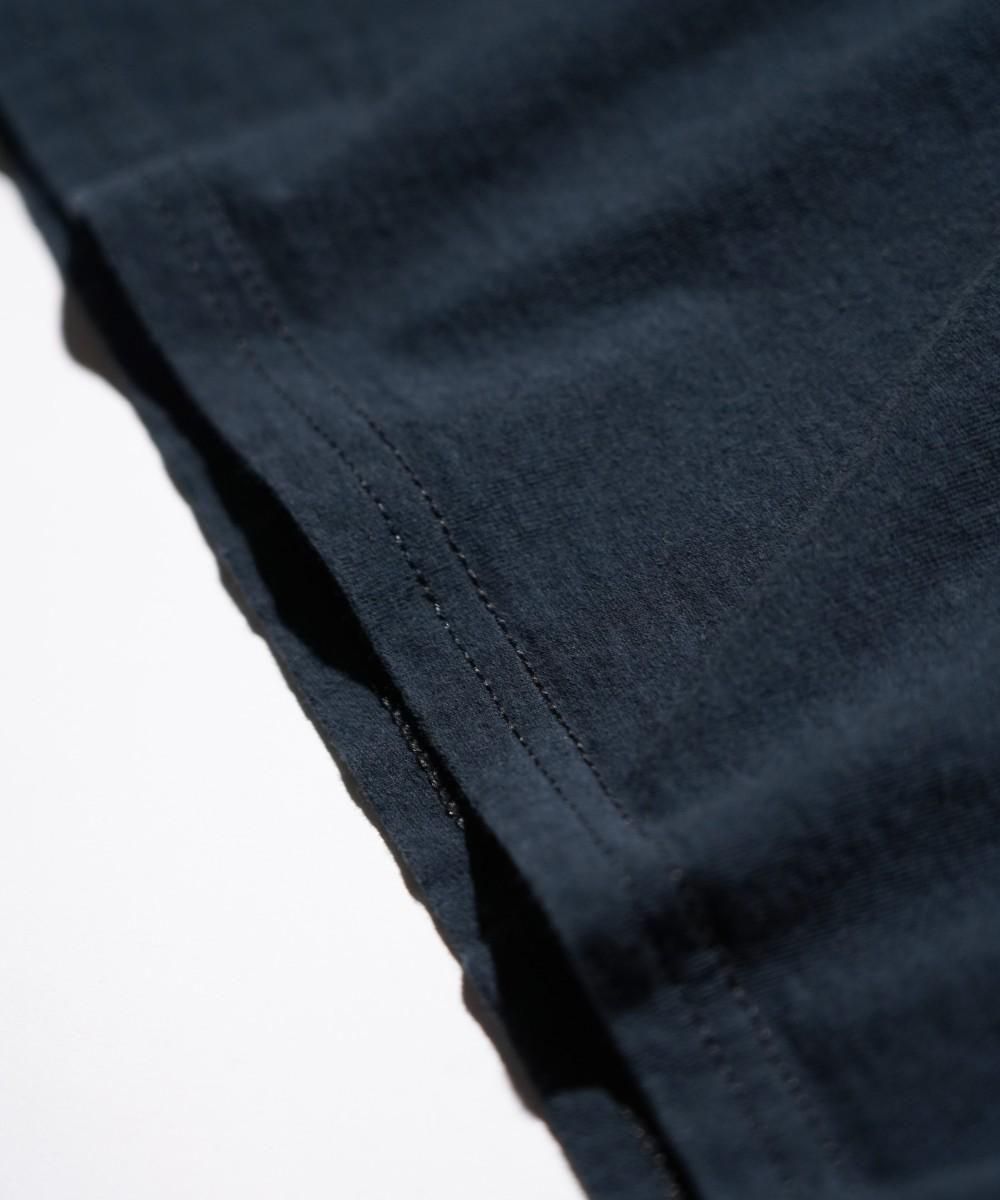 生地を傷めない加工なので新品でUSED感を楽しめます。洗いの工程で通常の洗いより15%水の量が少なく済む利点もあり環境も考慮している加工です。