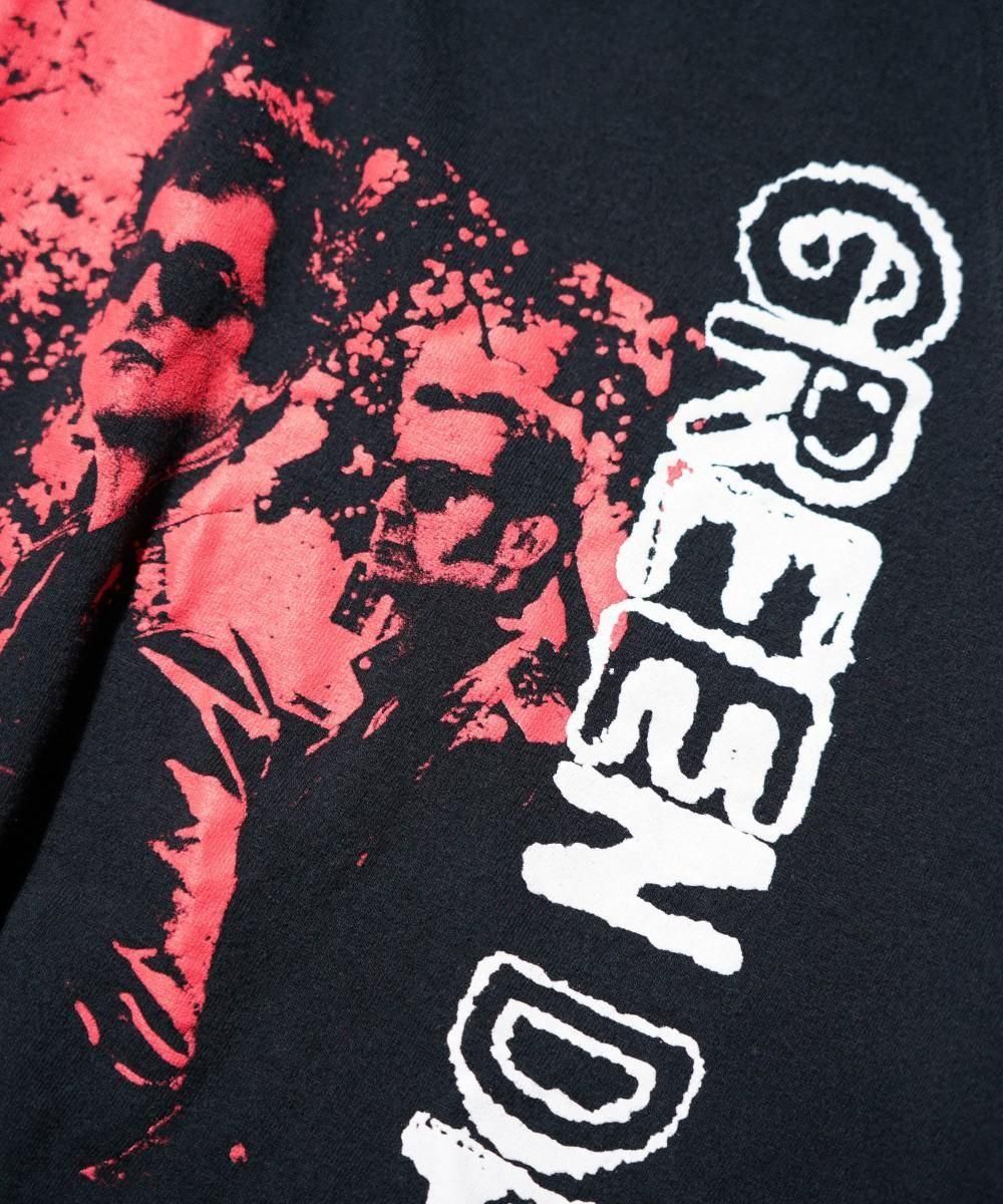 ※こちらの商品は1点物となります。USED加工の商品です。生地のムラ、シミ等はUSED加工ならではのリアル感を追求しています。必ずしも袖の長さが左右一致しているわけではありません。また、プリントやボディの色味につきましても特性上若干の色ブレがございます。ご理解、ご了承の上ご購入下さい。