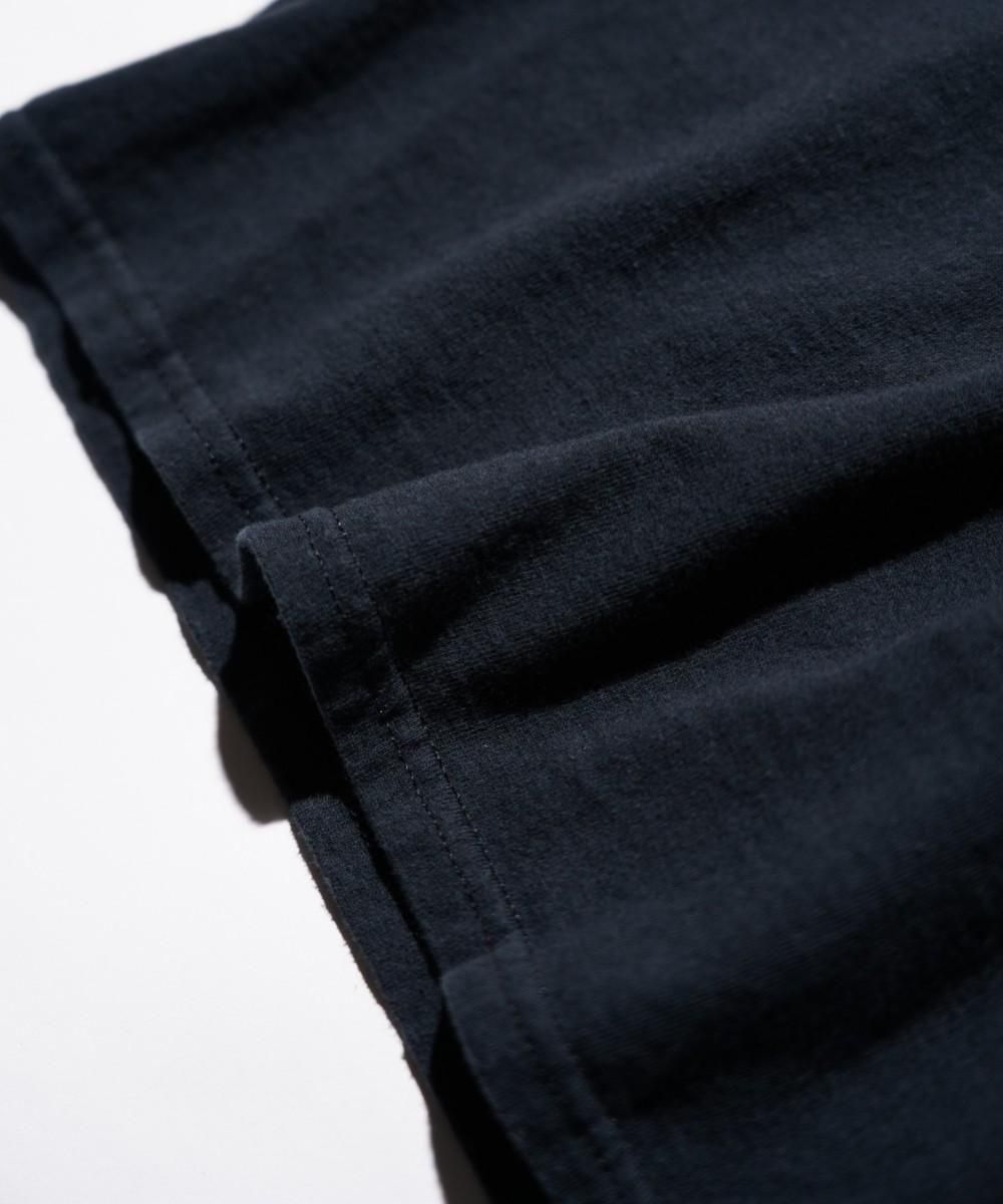 生地を傷めない加工なので新品でUSED感を楽しめます。洗いの工程で通常の洗いより15%水の量が少なく済む利点もあり環境も考慮している加工です。