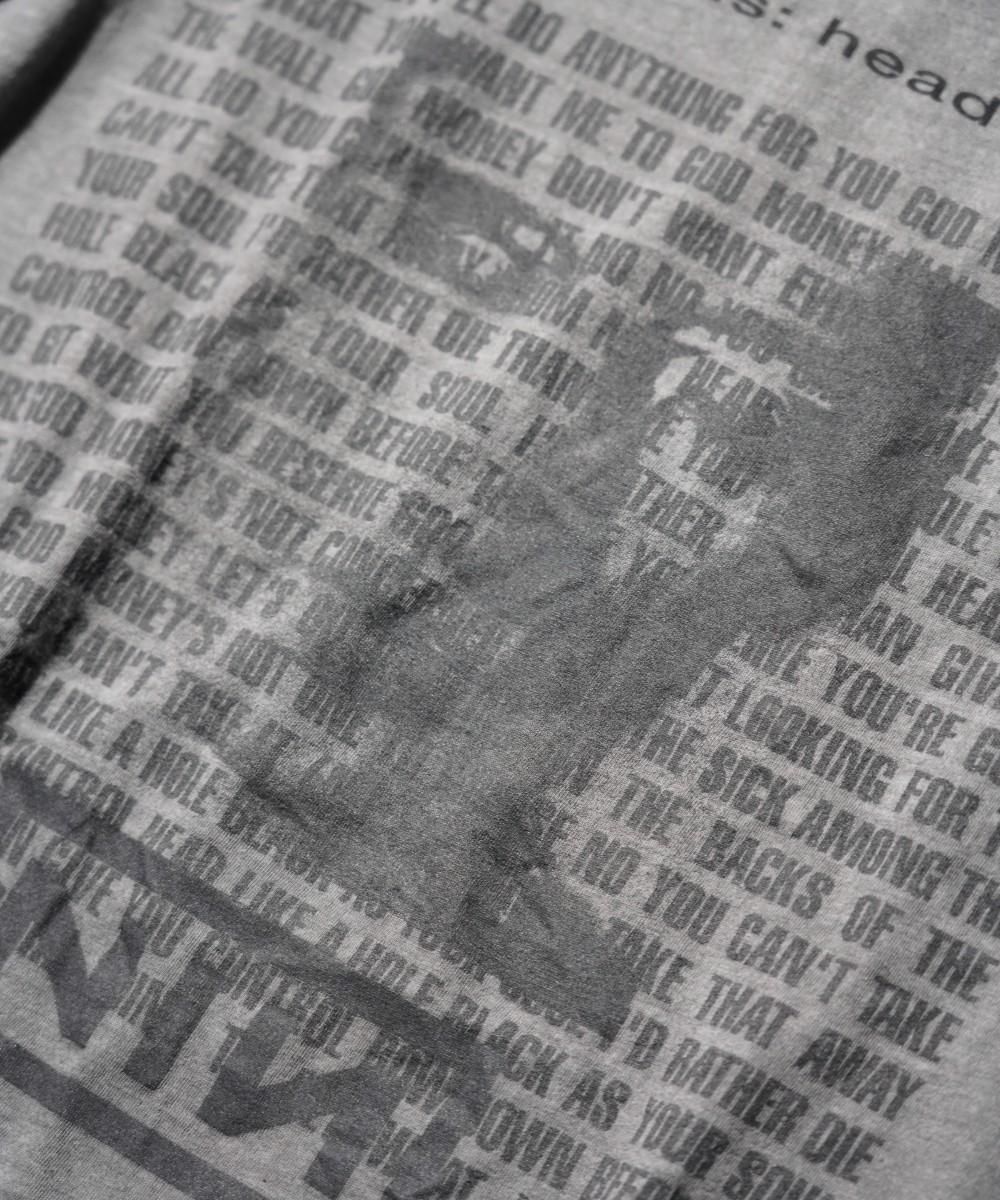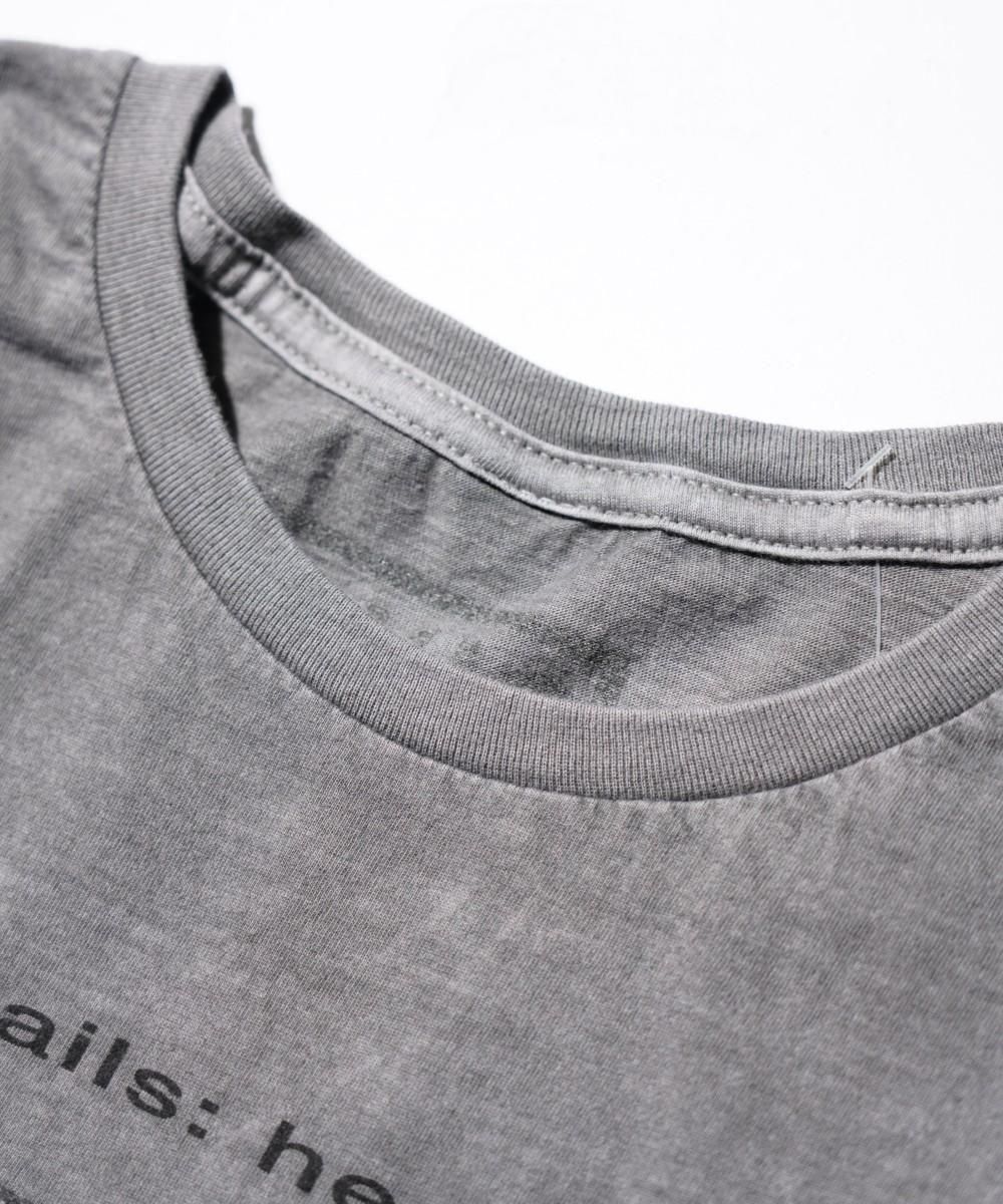 ※こちらの商品は1点物となります。USED加工の商品です。生地のムラ、シミ等はUSED加工ならではのリアル感を追求しています。必ずしも袖の長さが左右一致しているわけではありません。また、プリントやボディの色味につきましても特性上若干の色ブレがございます。ご理解、ご了承の上ご購入下さい。
