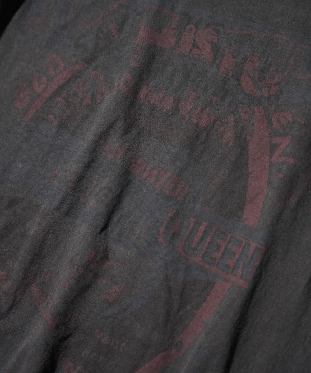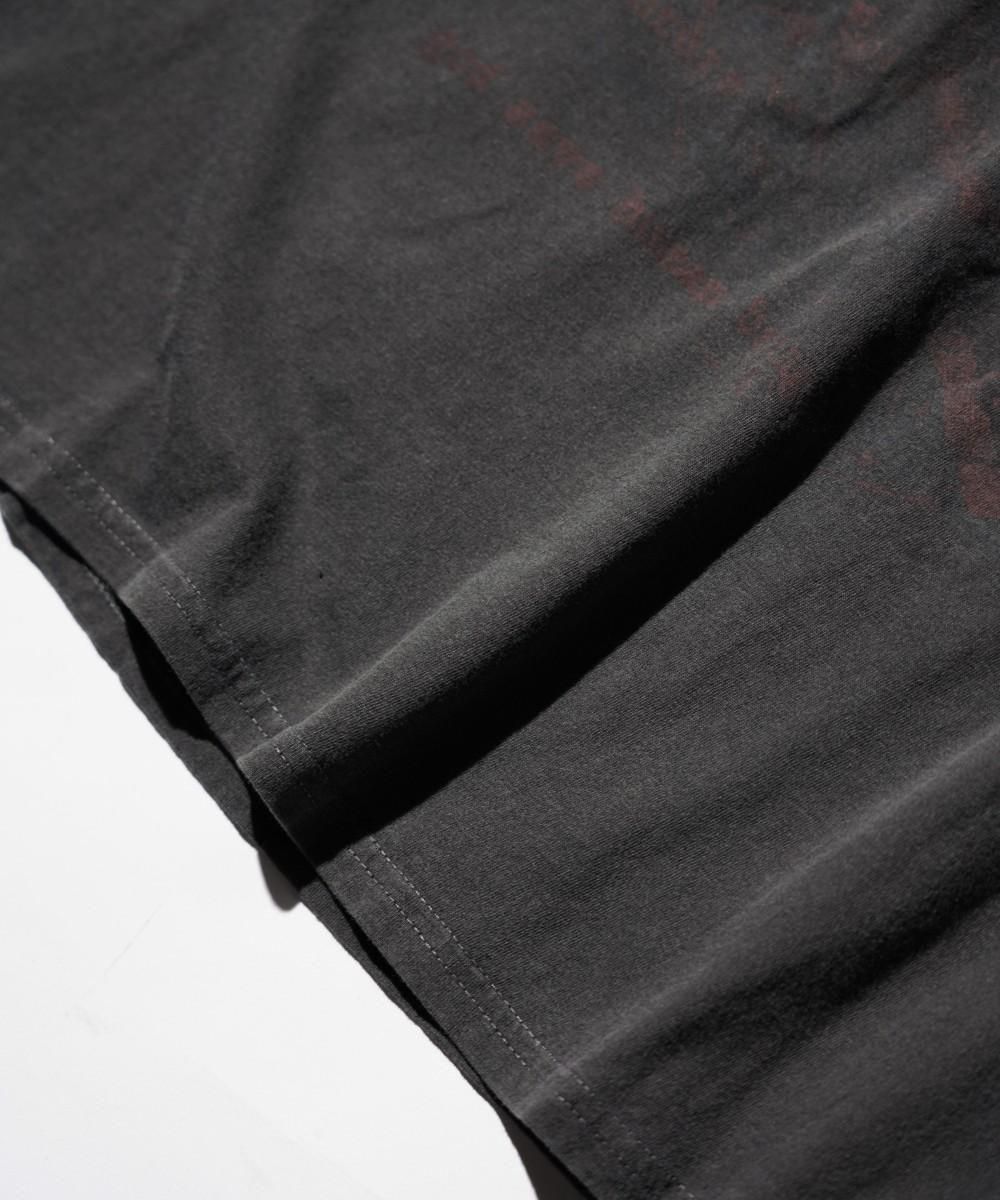 ※こちらの商品は1点物となります。USED加工の商品です。生地のムラ、シミ等はUSED加工ならではのリアル感を追求しています。必ずしも袖の長さが左右一致しているわけではありません。また、プリントやボディの色味につきましても特性上若干の色ブレがございます。ご理解、ご了承の上ご購入下さい。