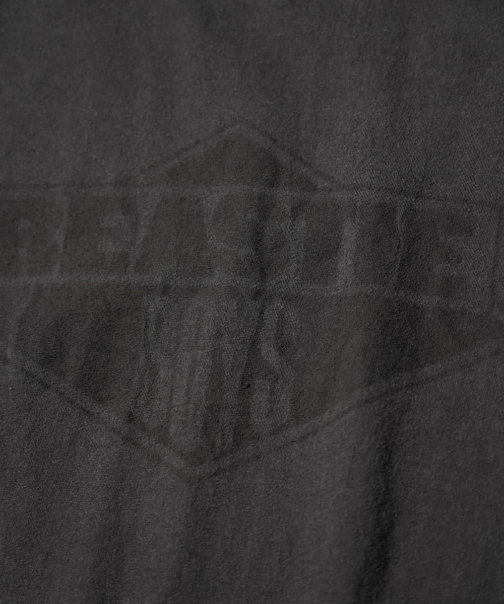 ※こちらの商品は1点物となります。USED加工の商品です。生地のムラ、シミ等はUSED加工ならではのリアル感を追求しています。必ずしも袖の長さが左右一致しているわけではありません。また、プリントやボディの色味につきましても特性上若干の色ブレがございます。ご理解、ご了承の上ご購入下さい。